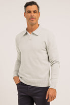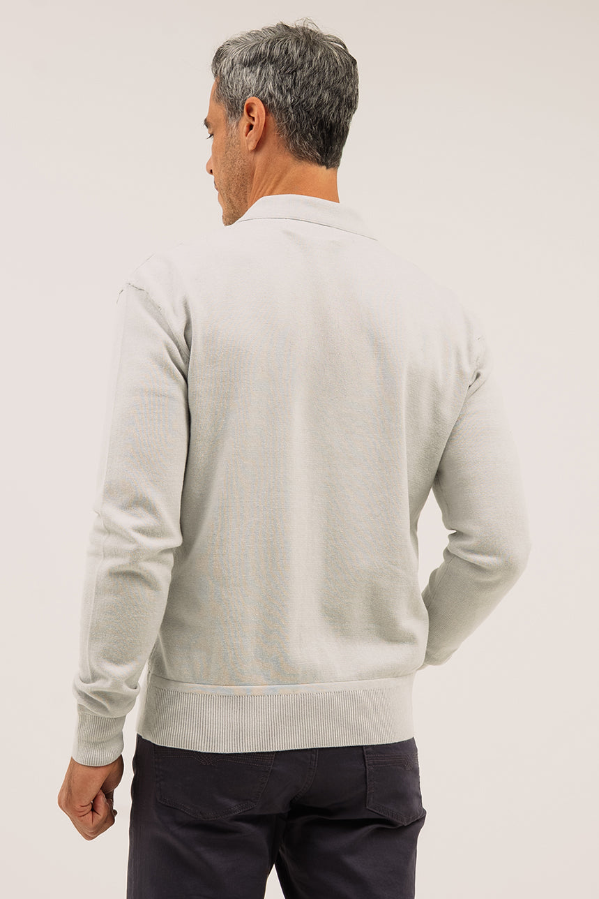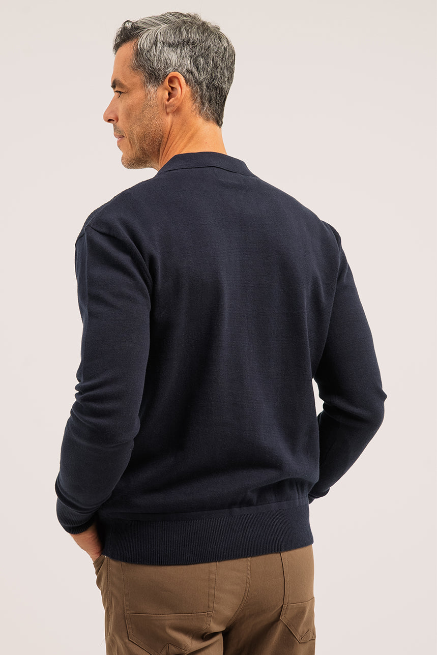 Le polo en tricot à manches longues présente une coupe régulière avec une encolure polo ouverte en V. Le devant est réalisé dans un tricot de coton extensible texturé, offrant un léger relief visuel, tandis que les bordures côtelées assurent une jolie finition. Manches longues et confort au rendez-vous pour un style décontracté et soigné.