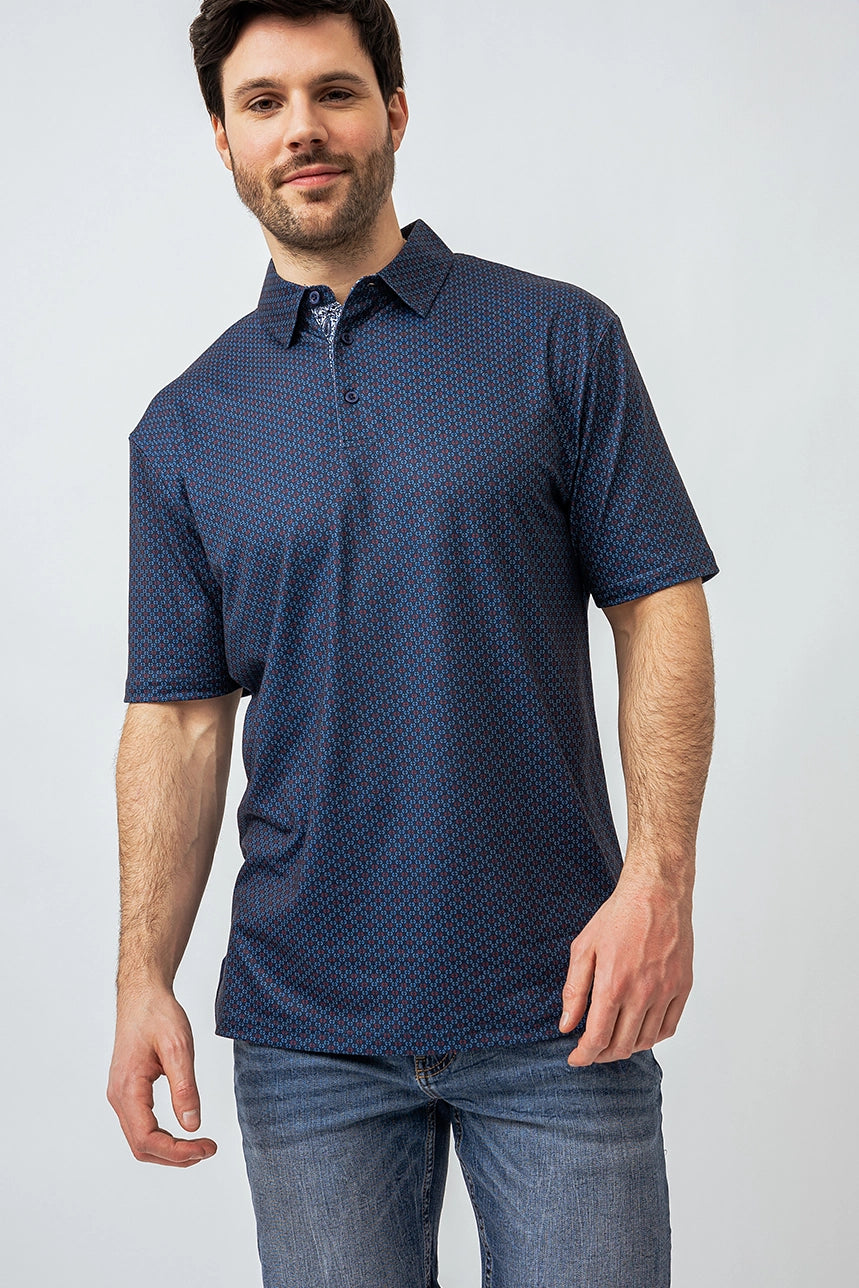 Polo imprimé all-over abstrait – Style audacieux et confort assuré