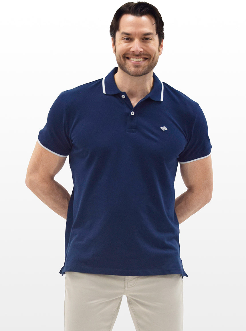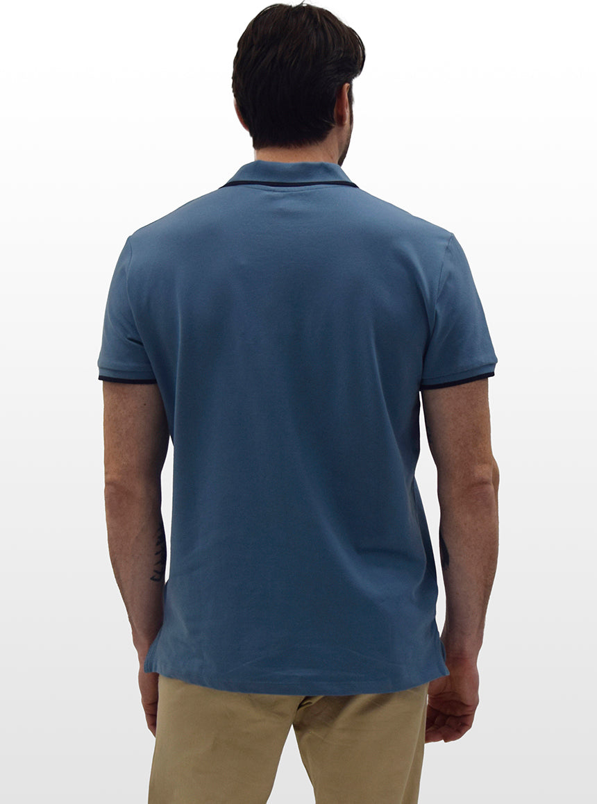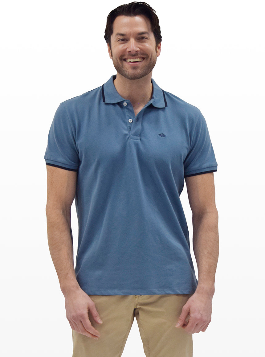 Polo en coton piqué de la marque Blend. Fine rayure en contraste au col et aux manches. Discrète inscription "Blend" brodée dans un losange à l'avant. Courtes fentes latérales. Ce polo pour homme complétera à merveille votre garde-robe décontractée pour créer un look classique.