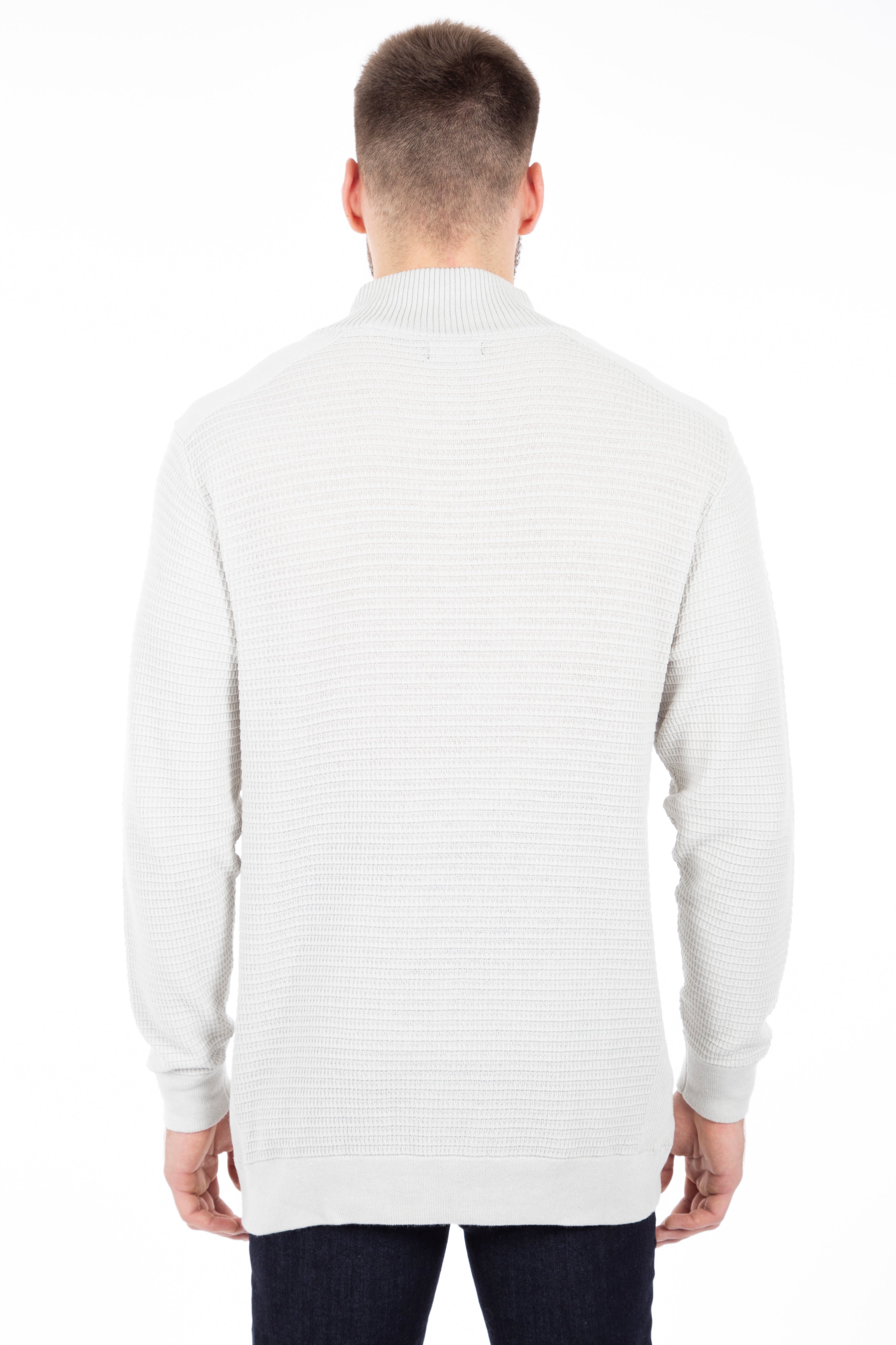Chandail pour homme en tricot léger texturé. Col montant demi-zip avec quatre boutons-pression. Tissu extensible et confortable. Poignets, col et ourlet avec bordure côtelée. Ce chandail pour homme idéal pour la saison vous procure confort et style au quotidien!