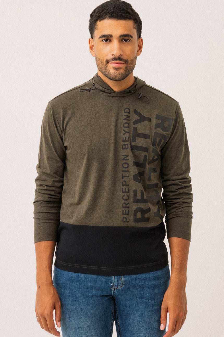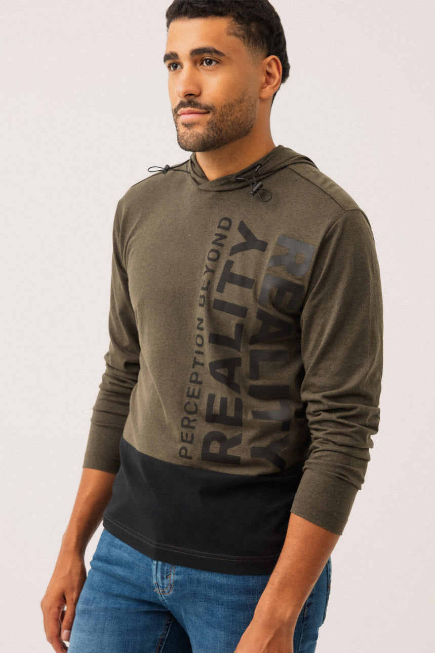 Le chandail à capuche allie confort et style moderne avec sa coupe régulière et sa matière en jersey de type t-shirt. Conçu avec une capuche munie d’un cordon élastique d’ajustement, il se distingue par son empiècement contrastant au bas à l’avant qui apporte une touche graphique et urbaine. Des imprimés décoratifs à l’avant ajoutent du caractère, tandis qu’une petite étiquette en tissu au bas du côté droit complète les détails soignés. Un essentiel décontracté qui se porte facilement au quotidien.