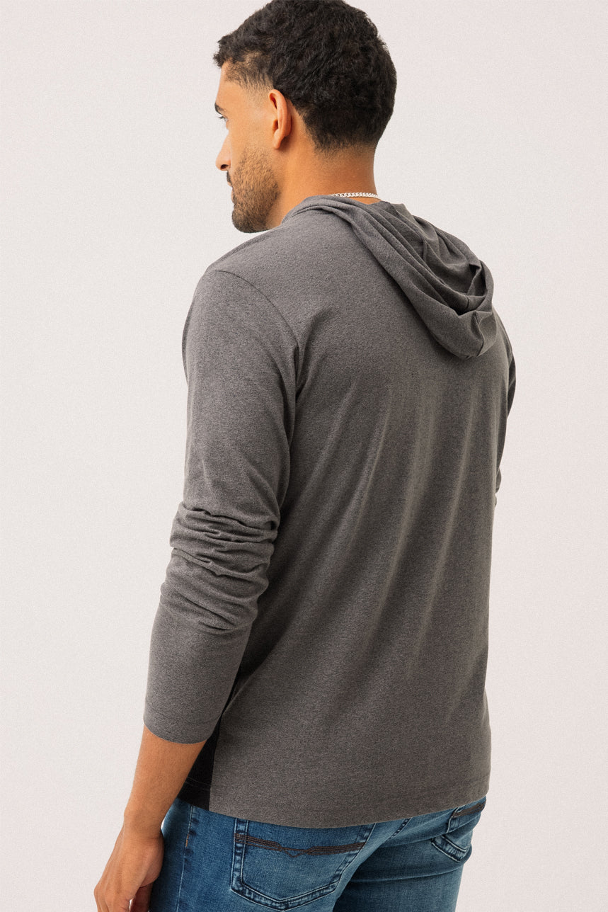 Le chandail à capuche avec empiècement au bas à l’avant