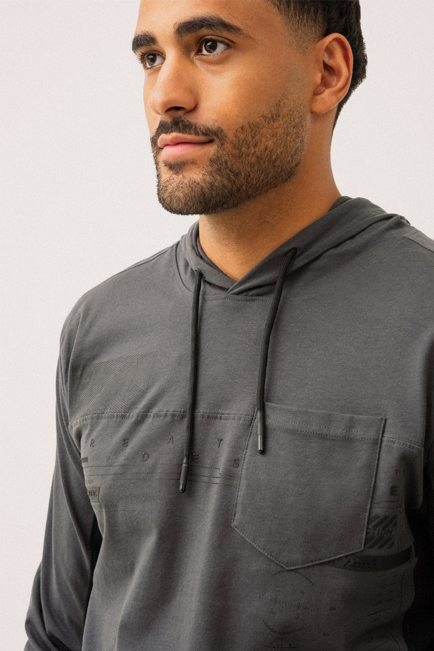Le chandail charcoal à capuche imprimé