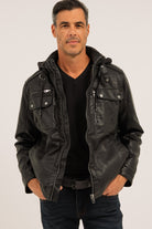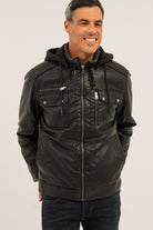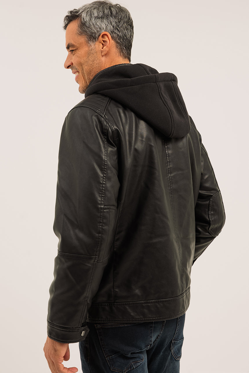 Le manteau en cuir vegan noir, modèle Karl, offre une coupe droite confortable et des manches longues avec poignets ajustables à boutons pression. Il est équipé d’une capuche style chandail amovible, fixée par fermeture éclair au col, ainsi que d’un col montant doublé en sherpa avec ajustement à boucle et bouton à pression. La fermeture éclair centrale solide est protégée par un revers coupe-vent intérieur. Côté rangement, il dispose de cinq poches à l’avant – dont deux poches Welt en angle, une poche à rabat et une fausse poche à rabat avec fermetures éclair à la poitrine – et trois poches à l’intérieur. Des empiècements décoratifs aux épaules et aux coudes viennent compléter ce manteau, tandis que sa doublure douce assure confort et chaleur au quotidien.