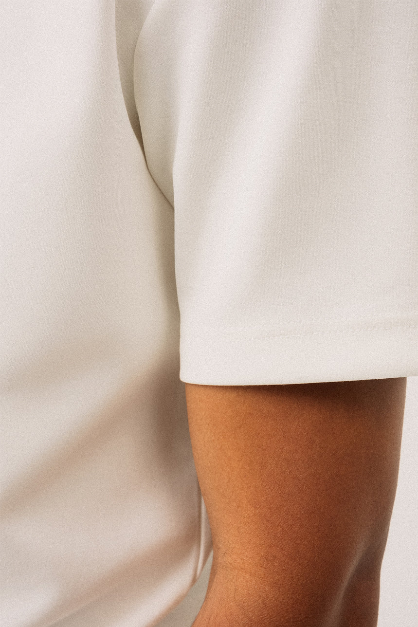 Le t-shirt en scuba par Projek Raw mise sur une allure moderne et structurée grâce à sa coupe “Boxy” au tombé net. Conçu avec un col rond classique et des manches courtes, il allie simplicité et style contemporain. Son tissu en scuba, reconnu pour sa tenue et sa texture lisse, confère un aspect raffiné tout en restant confortable. Un petit détail subtil, l’étiquette à la couture latérale gauche à 2 pouces de l’ourlet, vient compléter cette pièce minimaliste au caractère affirmé.
