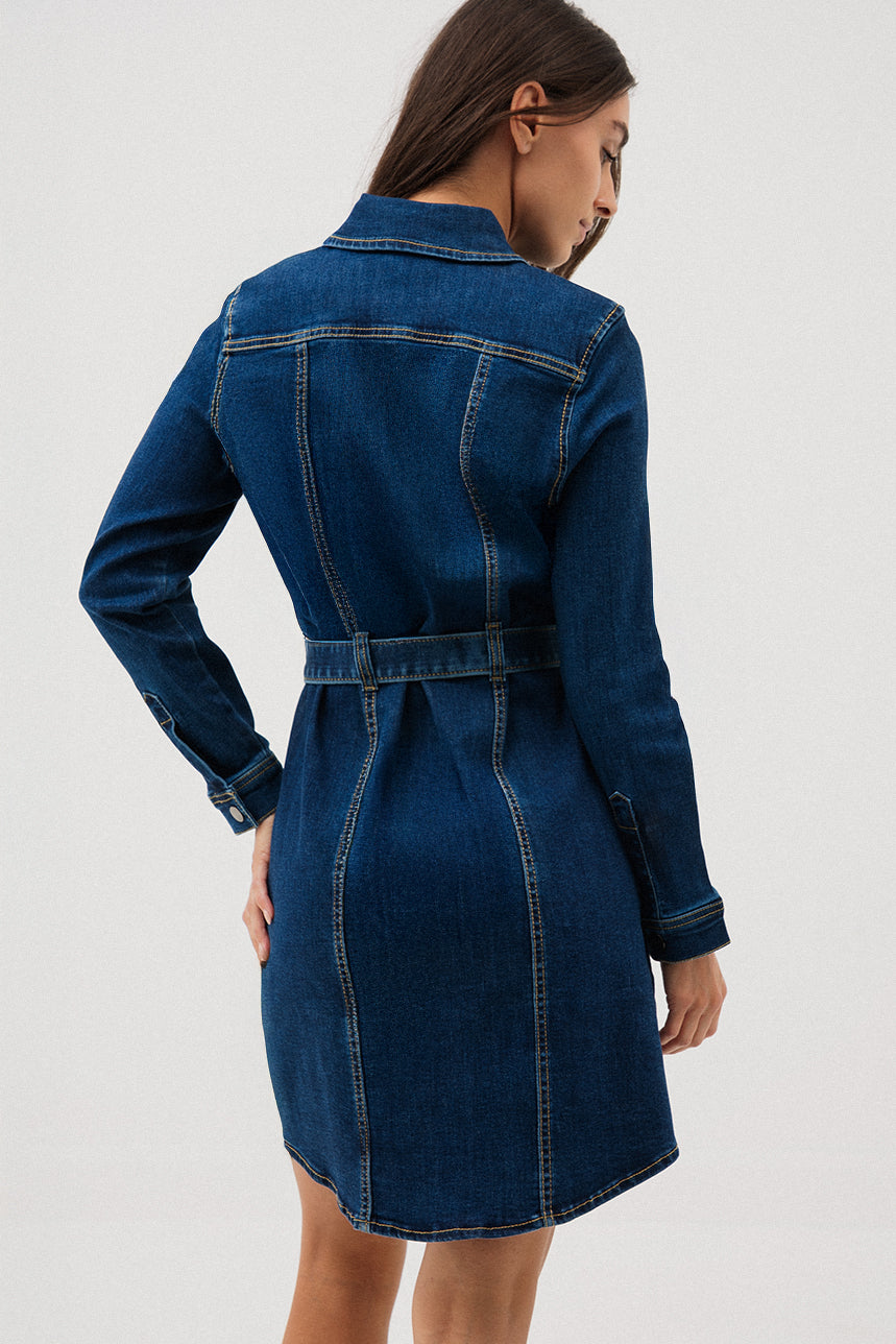 La robe en denim col chemisier