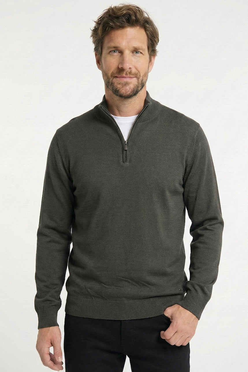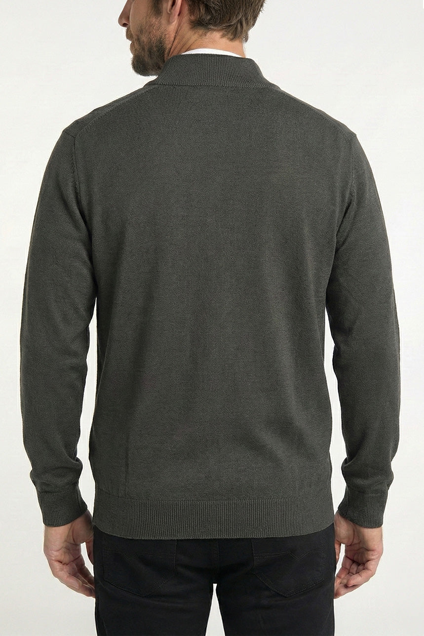 Le chandail en tricot chiné gris et noir avec fermeture éclair au col