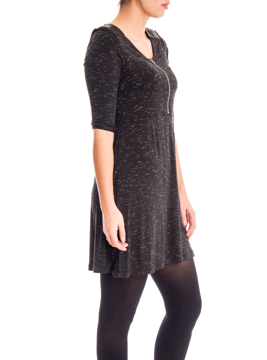 Robe extensible avec "zip" à l'avant et épaules en "simili cuir".