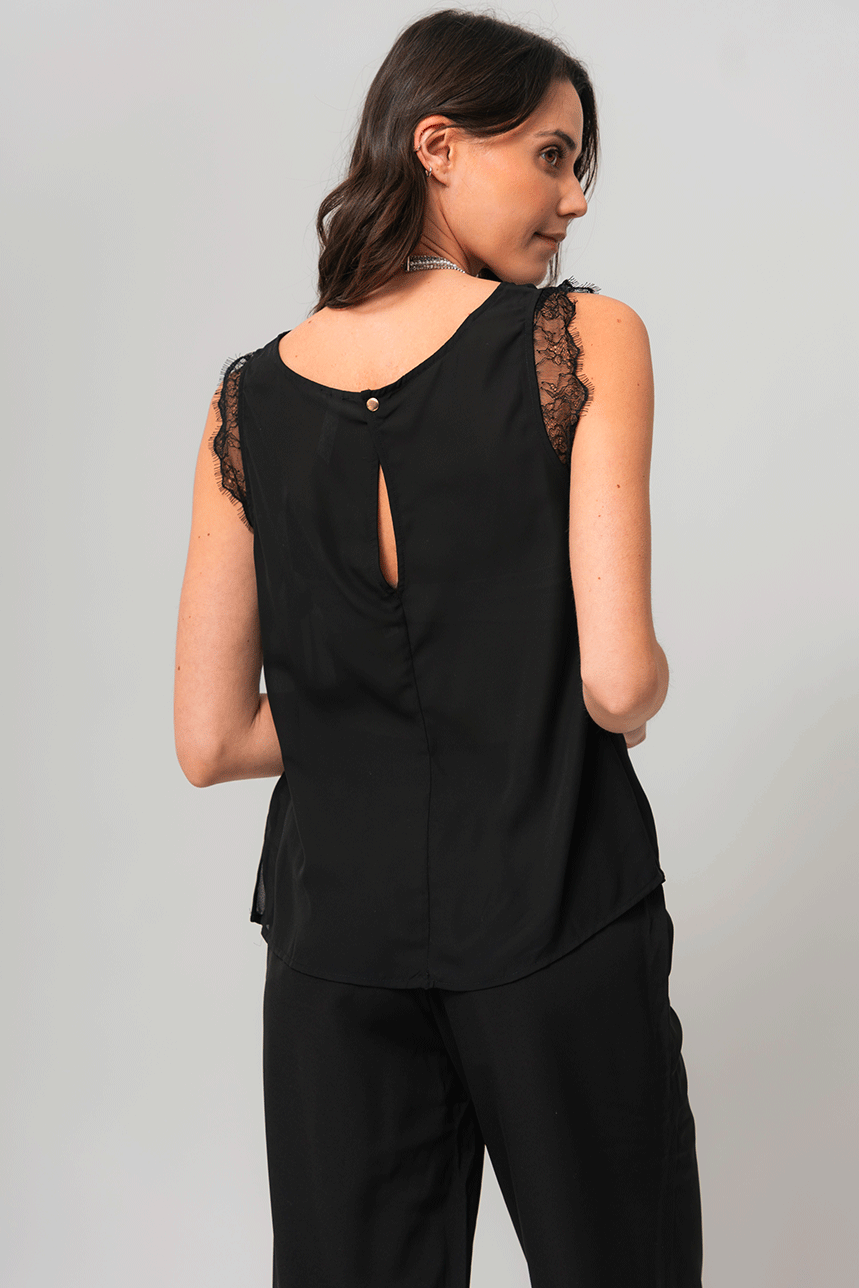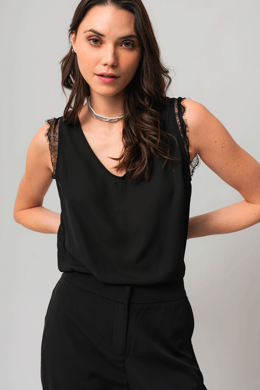 La blouse noire avec dentelle