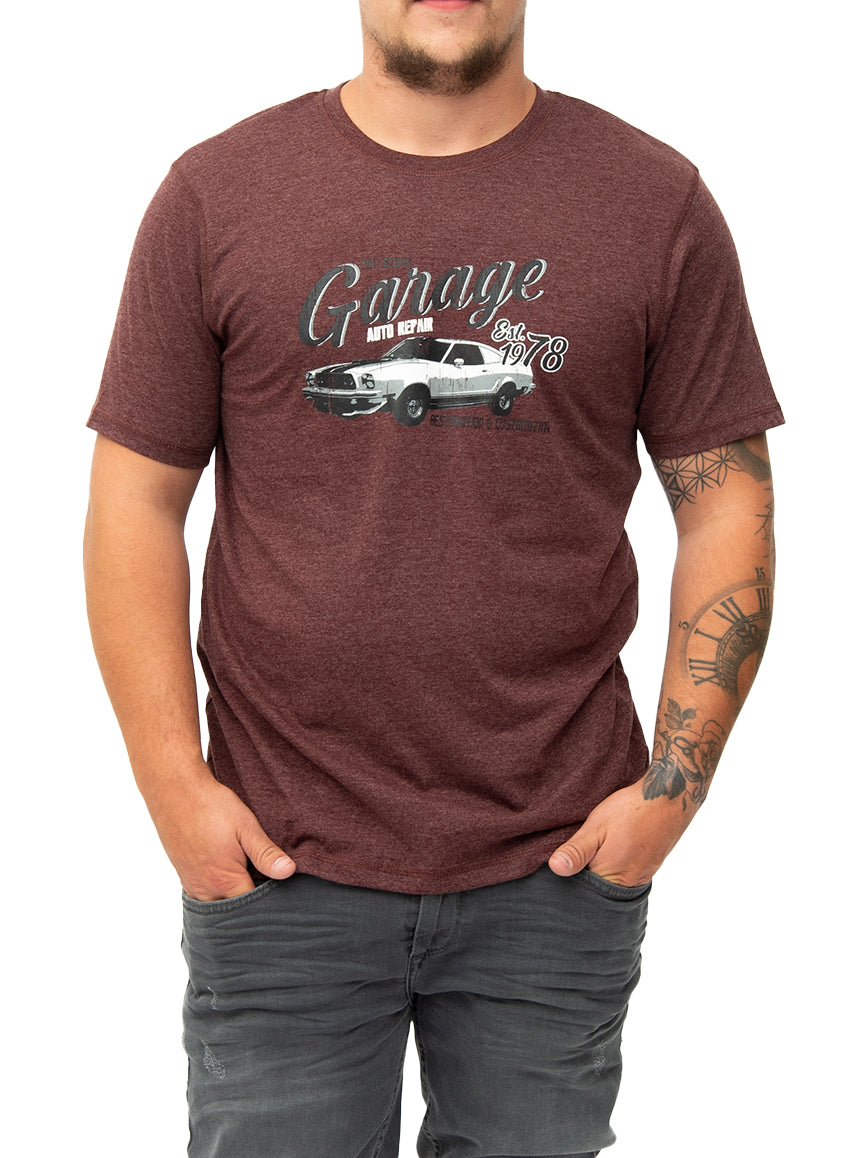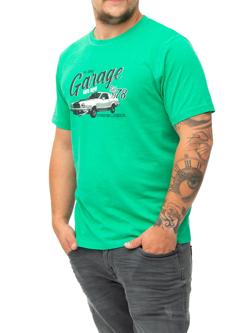 T-shirt pour homme à col rond. Imprimé "Garage" et voiture vintage.