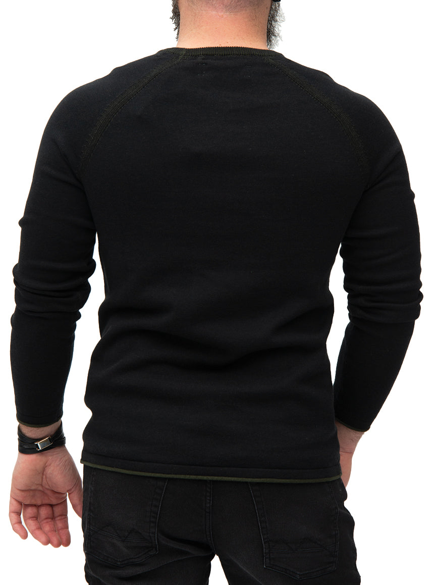 Chandail de type "pull" pour homme à col rond. Tricot léger, idéal pour l'entre-saison. Se porte très bien par-dessus un polo.
