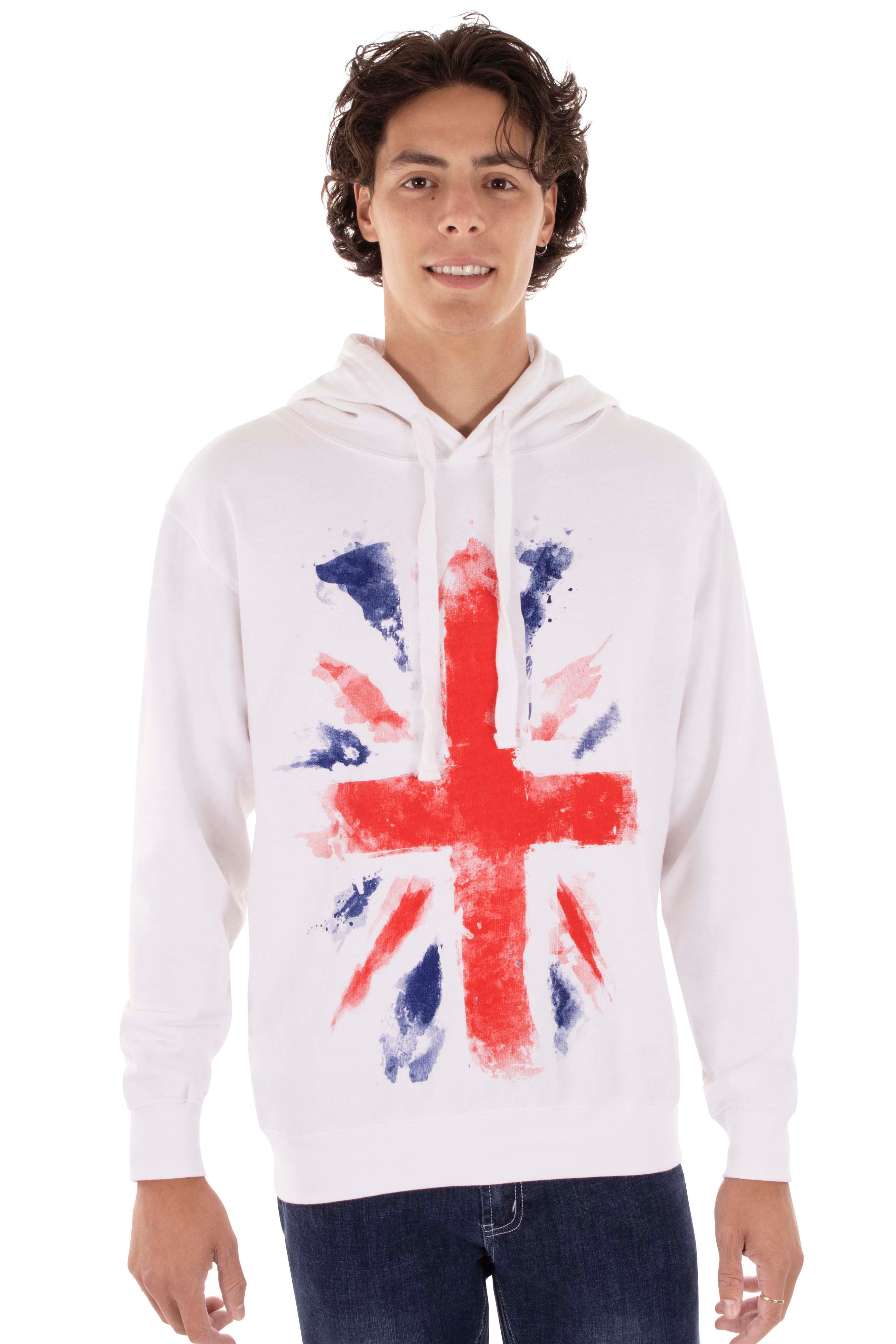 Chandail en coton ouaté avec imprimé graphique représentant le drapeau du Royaume-Uni sous forme de peinture effet aquarelle. Capuchon ajustable sur lacets coulissants. Poignets et ourlet élastiques. Tissu moelleux, léger et confortable. Envers en douce matière ouatinée. Que ce soit pour le camping ou pour les fraîches soirées d’été, ce chandail pour homme est parfait pour allier confort et style !