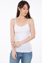 Camisole basique pour femme, de la collection Pentagone. Tissu ultra léger et extensible. Fines bretelles. Portez cette camisole pour femme sous tous vos hauts ou encore seule avec un jean ou un short pour la saison chaude.