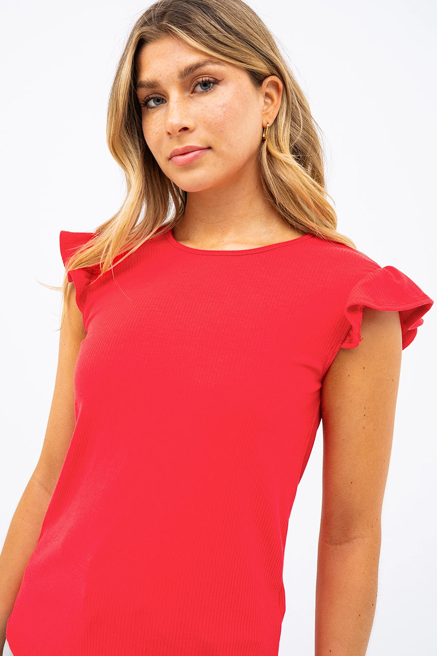 La camisole côtelée manches à volants