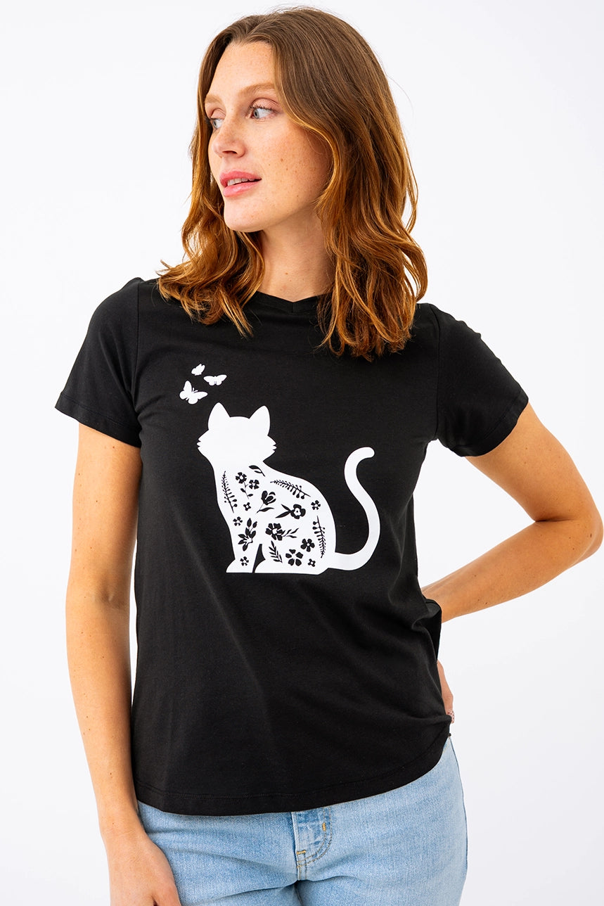 Affichez votre amour des félins avec ce t-shirt à l’imprimé Chat. Sa coupe régulière et son col en V apportent une touche de style, tandis que ses manches courtes et sa matière douce et extensible garantissent confort et liberté de mouvement. Parfait pour un look décontracté et mignon, qui ajoutera une touche de fun à votre garde-robe.
