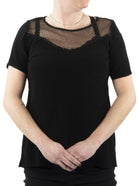 Blouse à manches courtes pour femme Pentagone. Insertion de dentelle au niveau du buste. Légère ouverture au haut du dos.