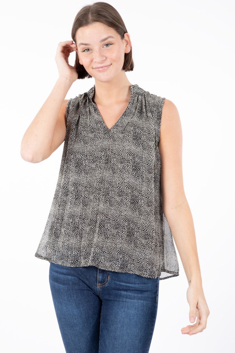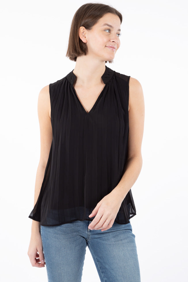 Camisole pour femme, de la marque Fransa. Tissu plissé en accordéon semi transparent et doublure opaque à l'intérieur. Col fente avec détails plissés. Soyez chic tout en restant confortable avec cette camisole ample pour femme.