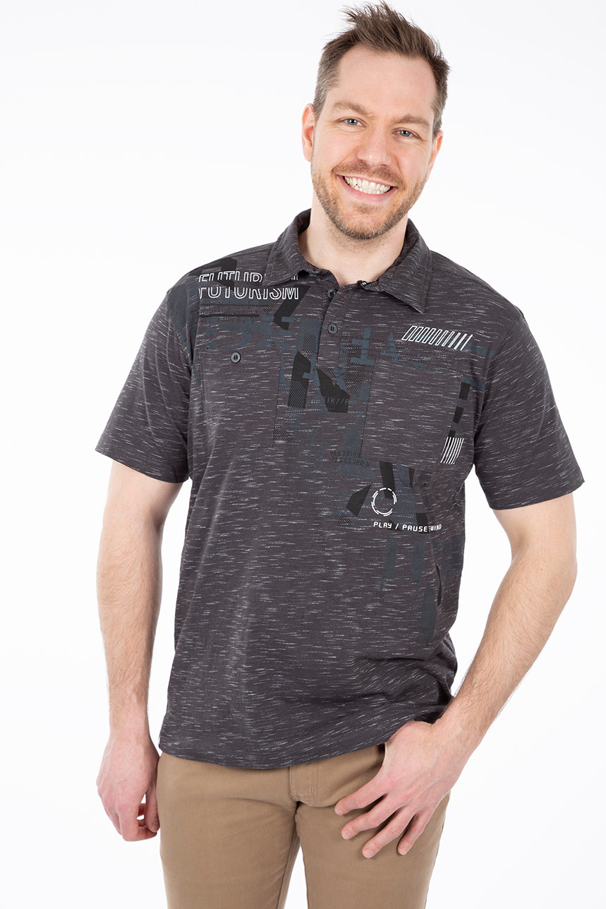 Polo à manches courtes pour homme, de la marque Projek Raw. Inscriptions « futurism » et « play / pause / rewind ». 2 poches à la poitrine, dont une avec bouton. Tissu léger et extensible pour un confort absolu. Agencez ce polo à votre jean préféré pour un look complet tout en simplicité.