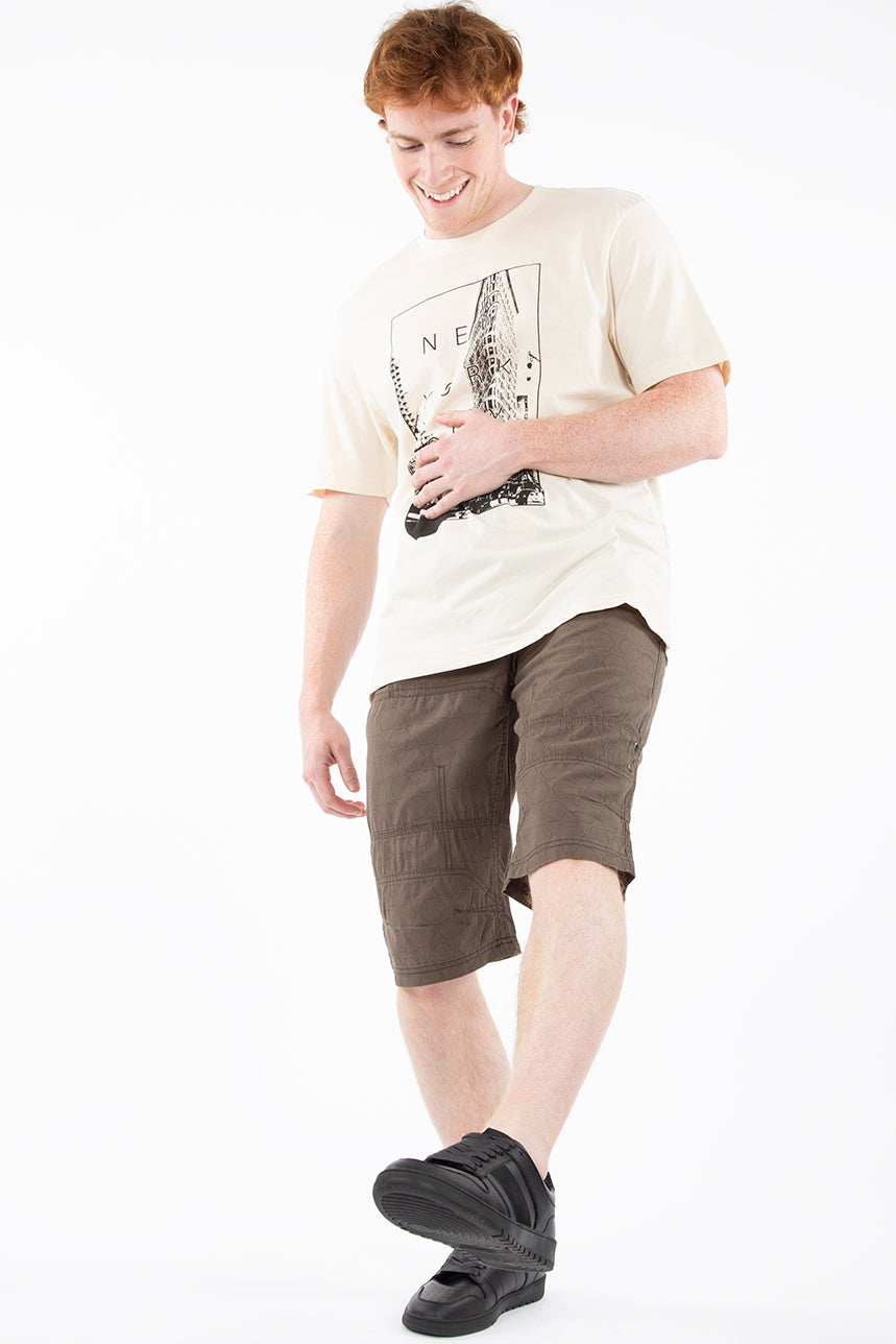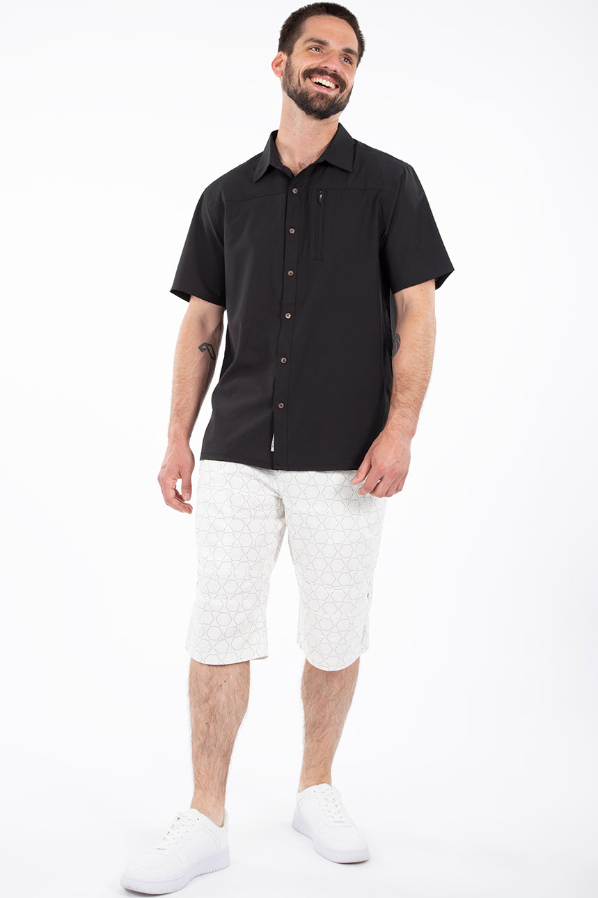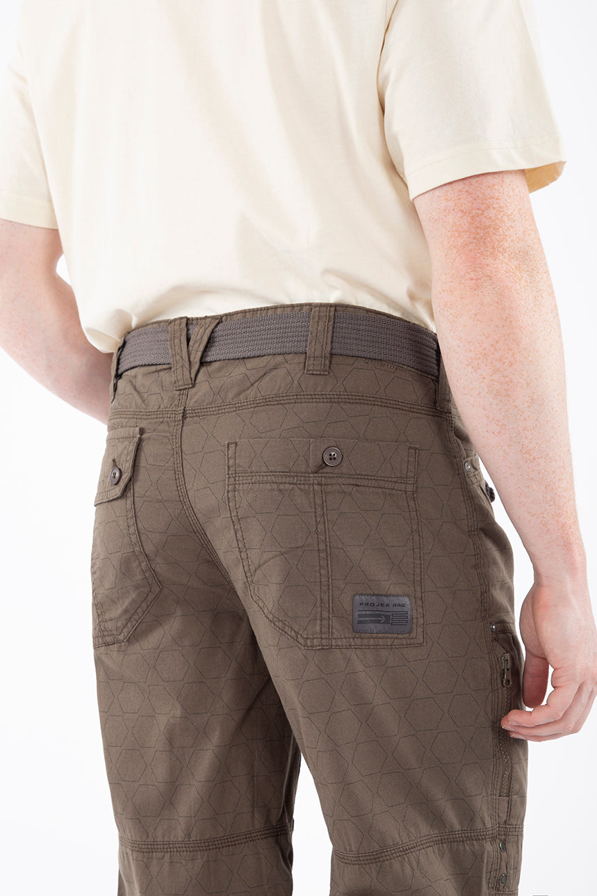 Capri pour homme, de la marque Projek Raw. Coupe 5 poches et poche avec fermeture éclair à la cuisse. Ceinture en toile comprise. On aime l'imprimé hexagonal de ce capri pour homme qui s’agence parfaitement avec tous vos t-shirts, polos et camisoles.
