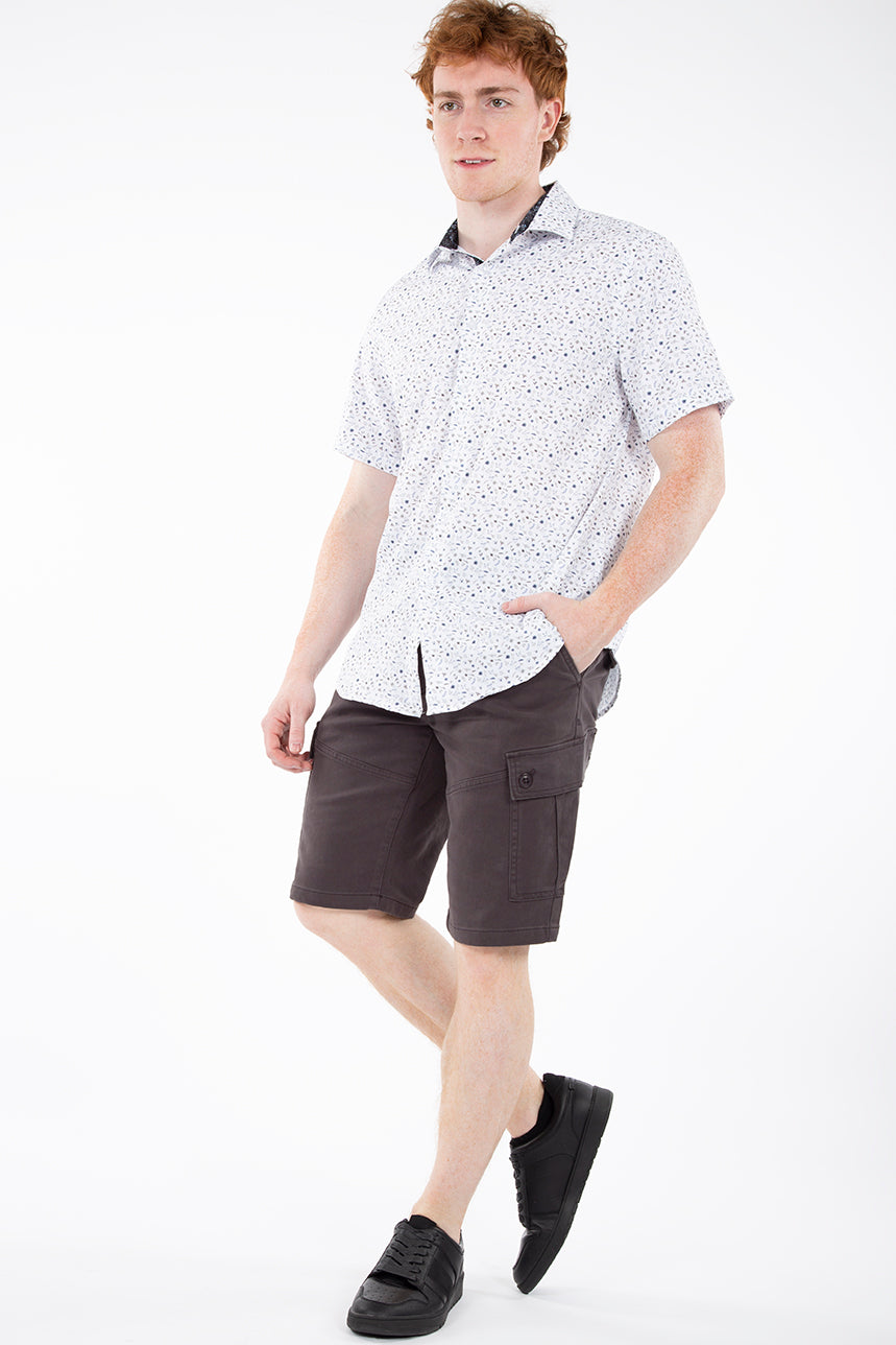 Bermuda cargo pour homme, de la marque Projek Raw. Poches latérales et poches arrière boutonnées. Poches cargo sur les côtés. Découpes graphiques avec coutures ton sur ton. Taille élastique ajustable sur cordon coulissant. On aime le look cargo de ce bermuda pour homme qui s’agence parfaitement avec tous vos t-shirts, polos et camisoles.