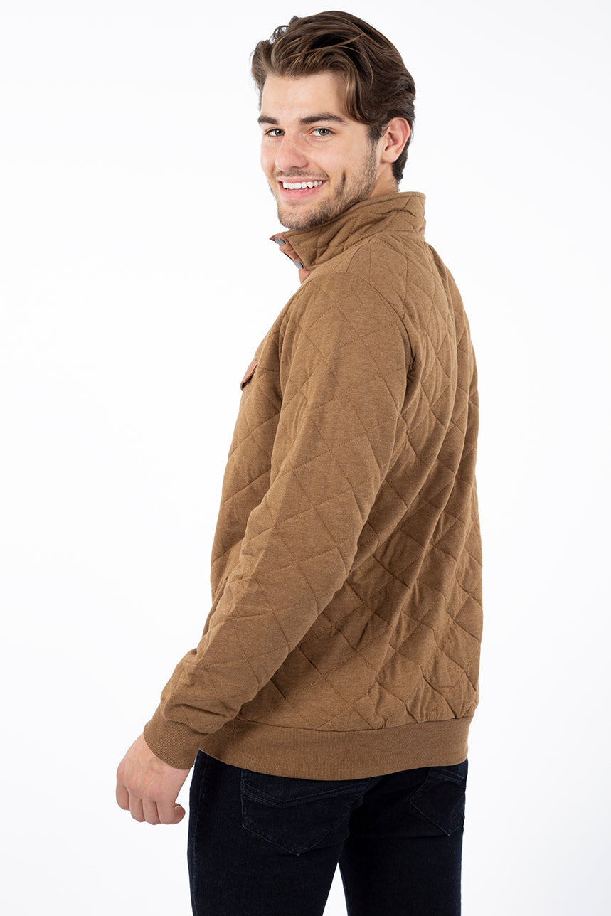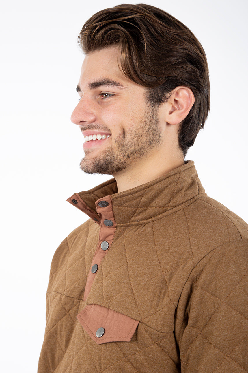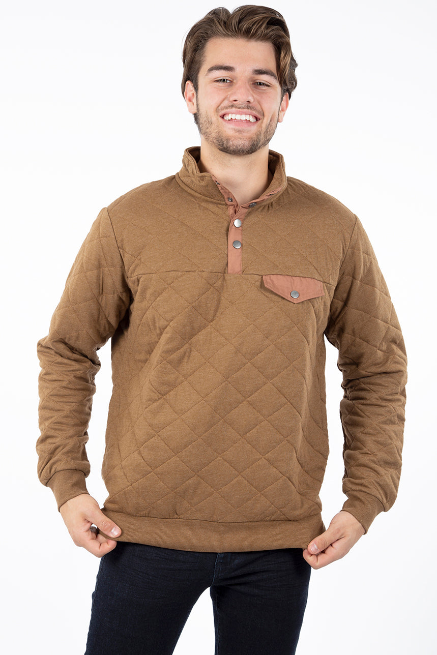 Chandail matelassé pour homme, dessiné au Québec exclusivement pour Pentagone. Poche passepoilée à rabat sur la poitrine et col montant avec boutons pression. Tricot côtelé extensible à la taille et aux poignets. Ce chandail pour homme léger et confortable est parfait pour la saison froide. Portez-le avec votre jean préféré pour un look tendance.