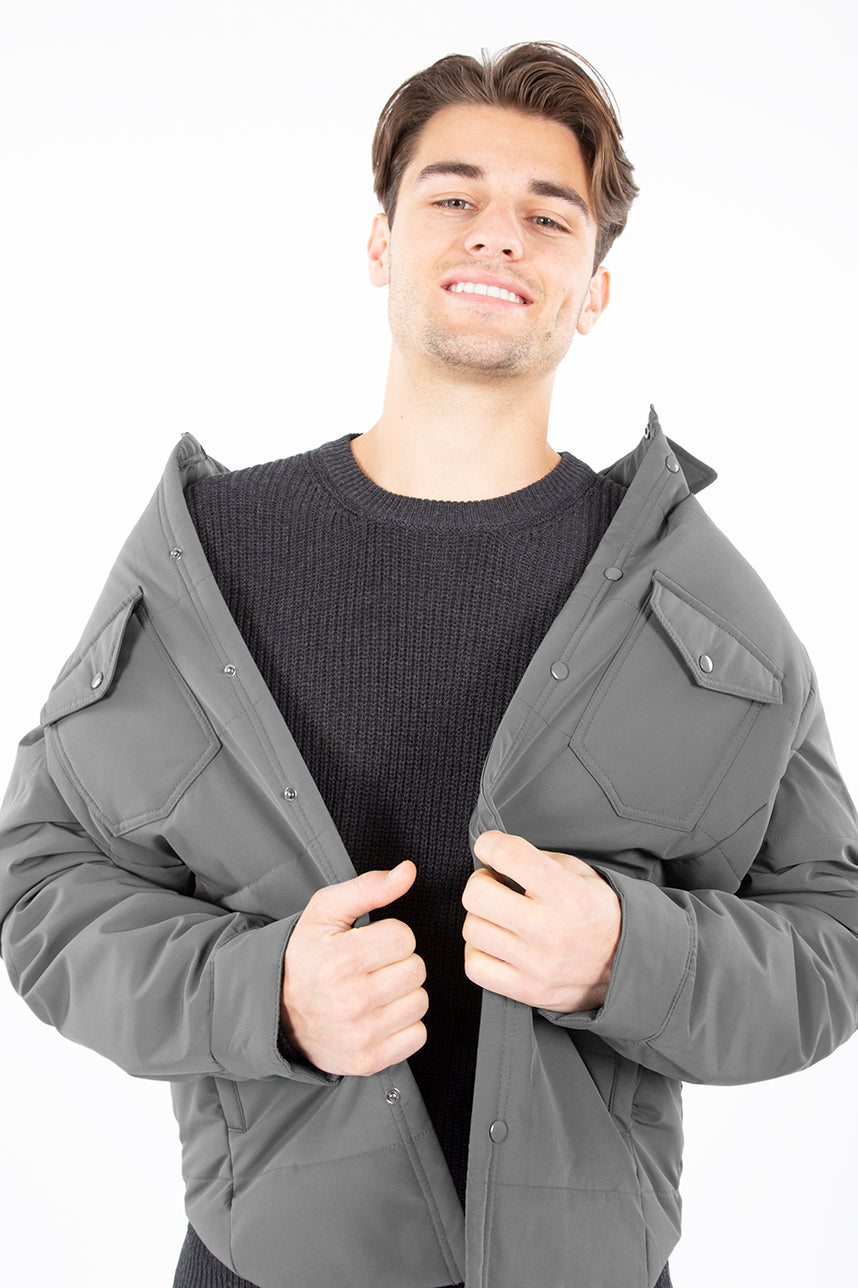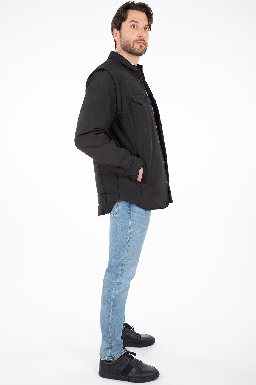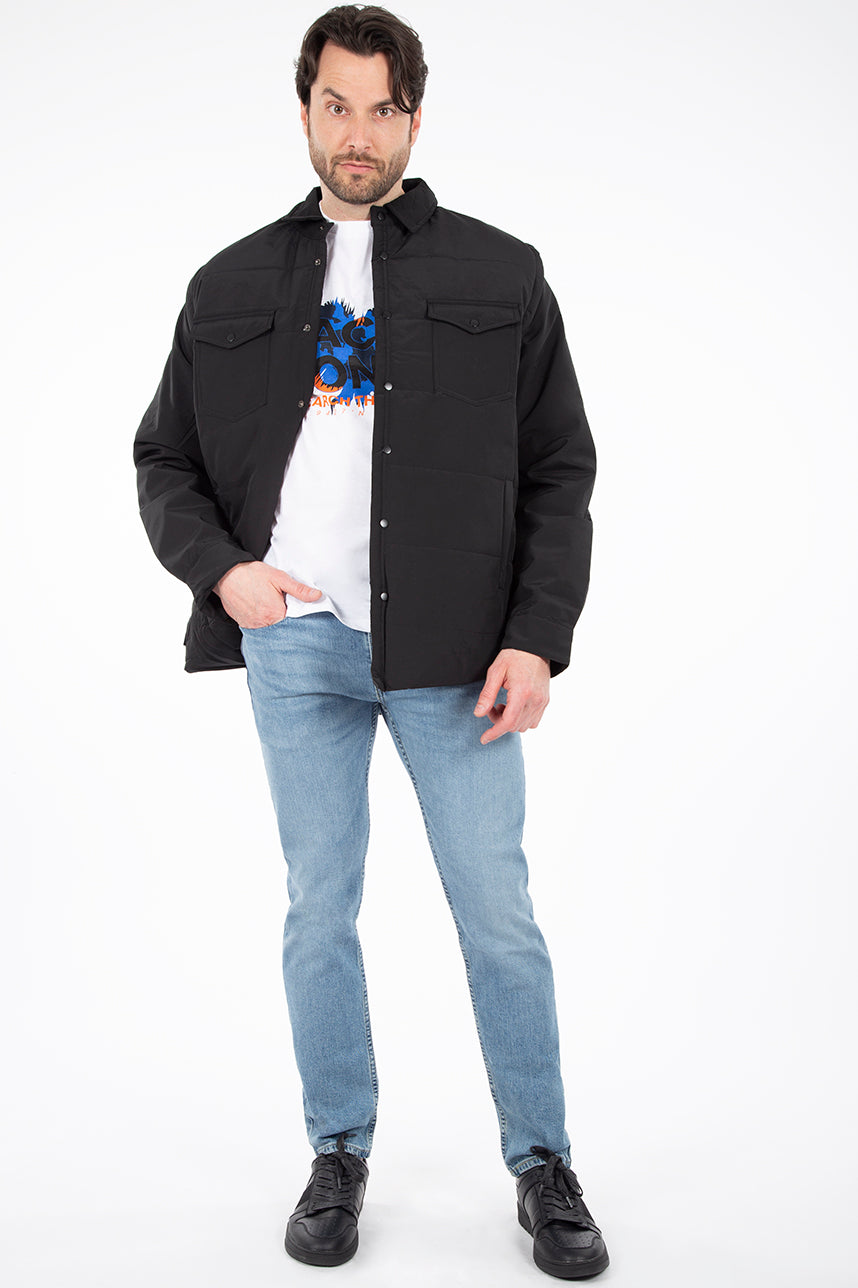 Manteau mi-saison matelassé pour homme. Poches latérales et poches plaquées à la poitrine. Patte de boutonnage à boutons-pression sur toute la longueur. Manches amovibles avec fermeture éclair. Restez stylé malgré le froid avec ce manteau pour homme totalement tendance.