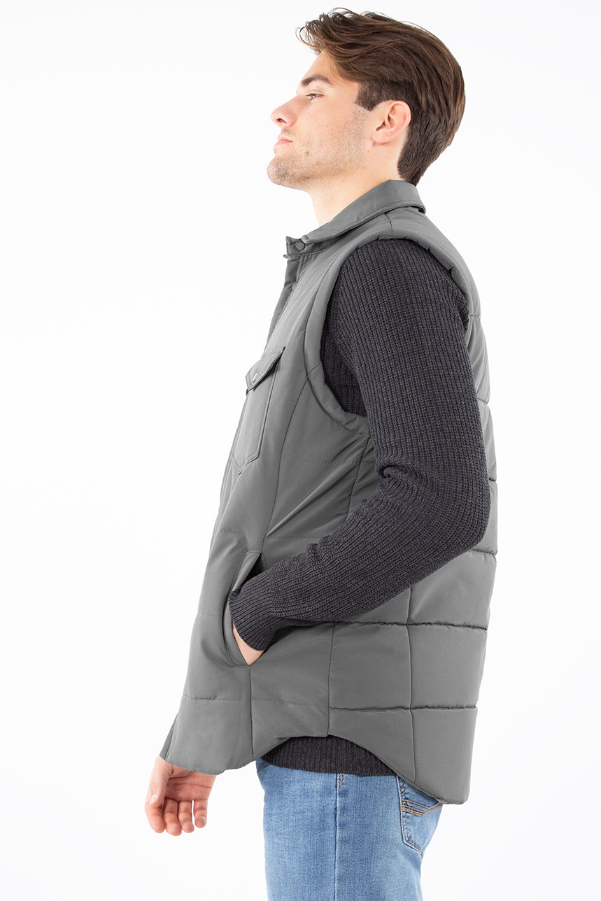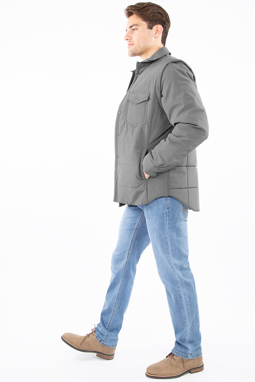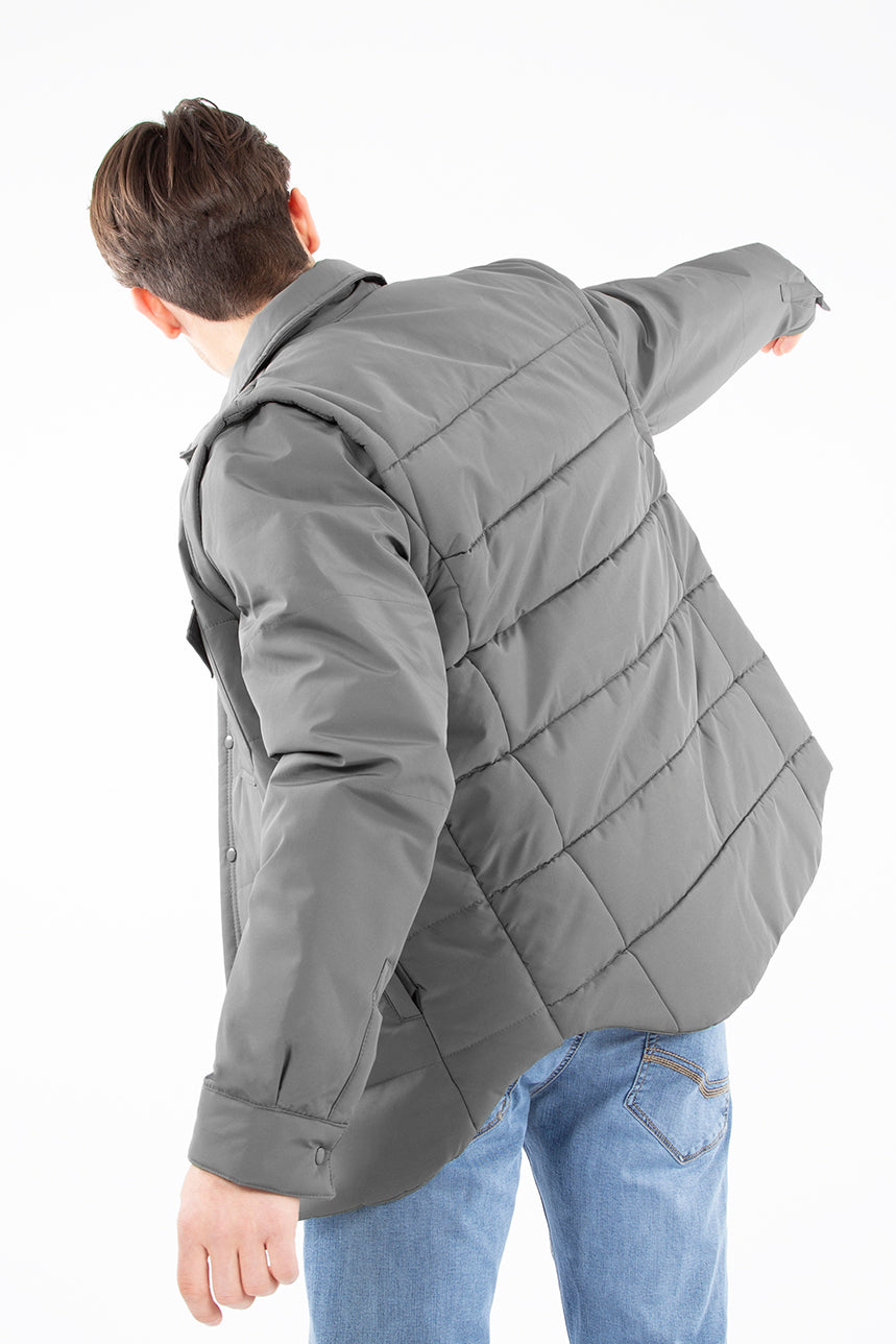 Manteau mi-saison matelassé pour homme. Poches latérales et poches plaquées à la poitrine. Patte de boutonnage à boutons-pression sur toute la longueur. Manches amovibles avec fermeture éclair. Restez stylé malgré le froid avec ce manteau pour homme totalement tendance.