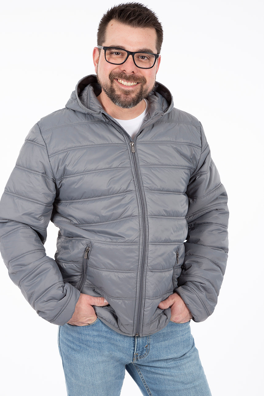 Manteau matelassé pour homme, idéal pour le printemps et l'automne. Poches latérales avec fermeture éclair. Ce manteau ultra léger et confortable pour homme vous suivra dans toutes vos sorties.
