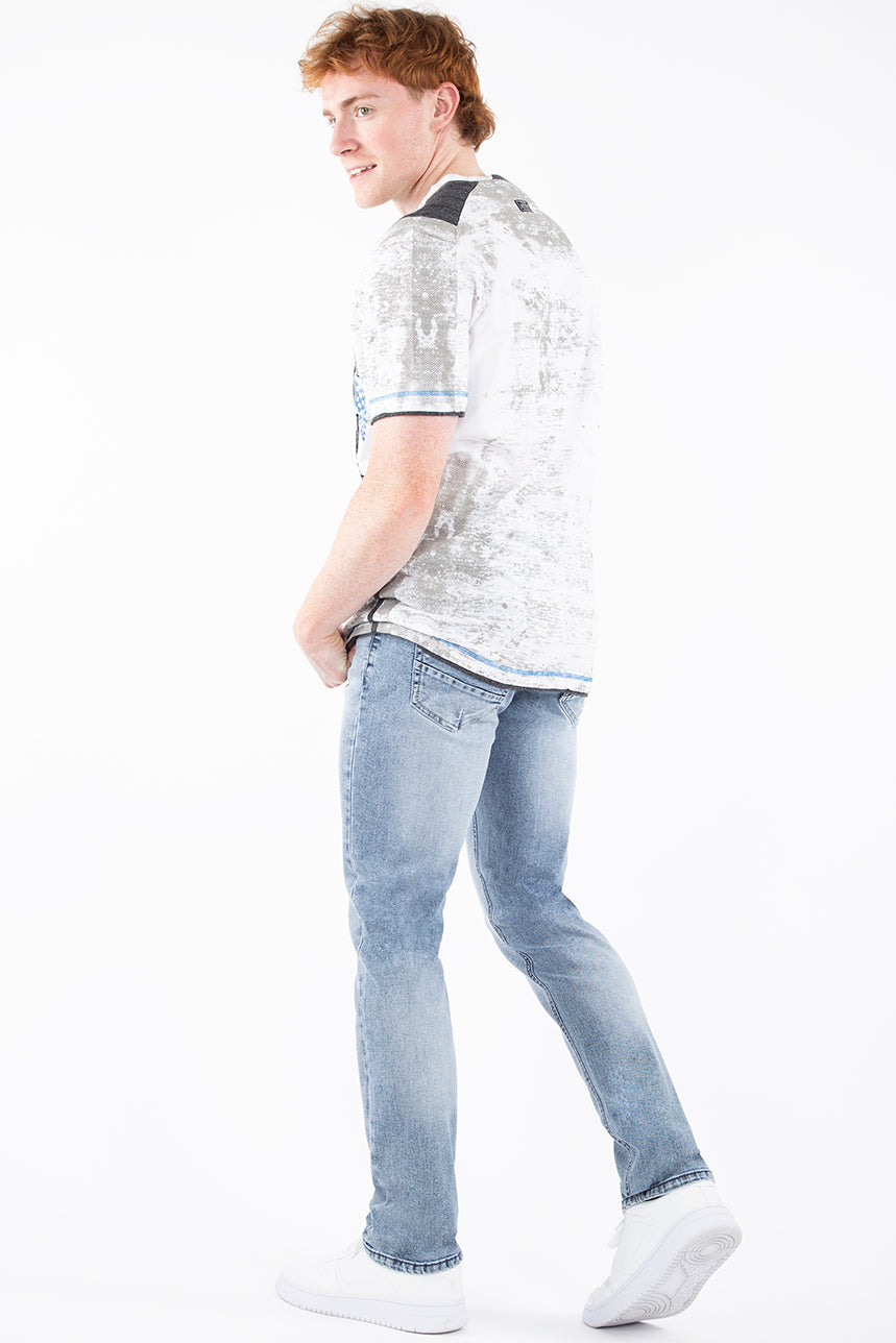 Jean pour homme, dessiné au Québec, de la collection Pentagone premium. Denim avec détails usés. Coupe ajustée qui vous offre un look des plus tendance. Léger et extensible, ce jean pour homme vous offrira un confort inégalé. Porté avec un t-shirt, un chandail ou une chemise, il conviendra parfaitement à toutes vos activités quotidiennes.