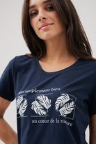 Le t-shirt droit imprimé se distingue par sa coupe ajustée qui épouse légèrement la silhouette tout en restant confortable. Il présente un col rond classique et un imprimé à l’avant qui apporte une touche de style. L’ourlet droit complète son design simple et polyvalent, idéal pour un look décontracté au quotidien.