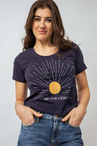 Éclairez votre style avec ce t-shirt à l’imprimé Soleil. Sa coupe régulière et son col rond apportent une touche de simplicité et de confort, tandis que ses manches courtes et sa matière douce et extensible assurent un bien-être tout au long de la journée. Mélissa, mesurant 5'8, porte la taille Petit. Parfait pour un look frais et lumineux, idéal pour les journées ensoleillées.