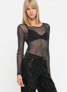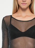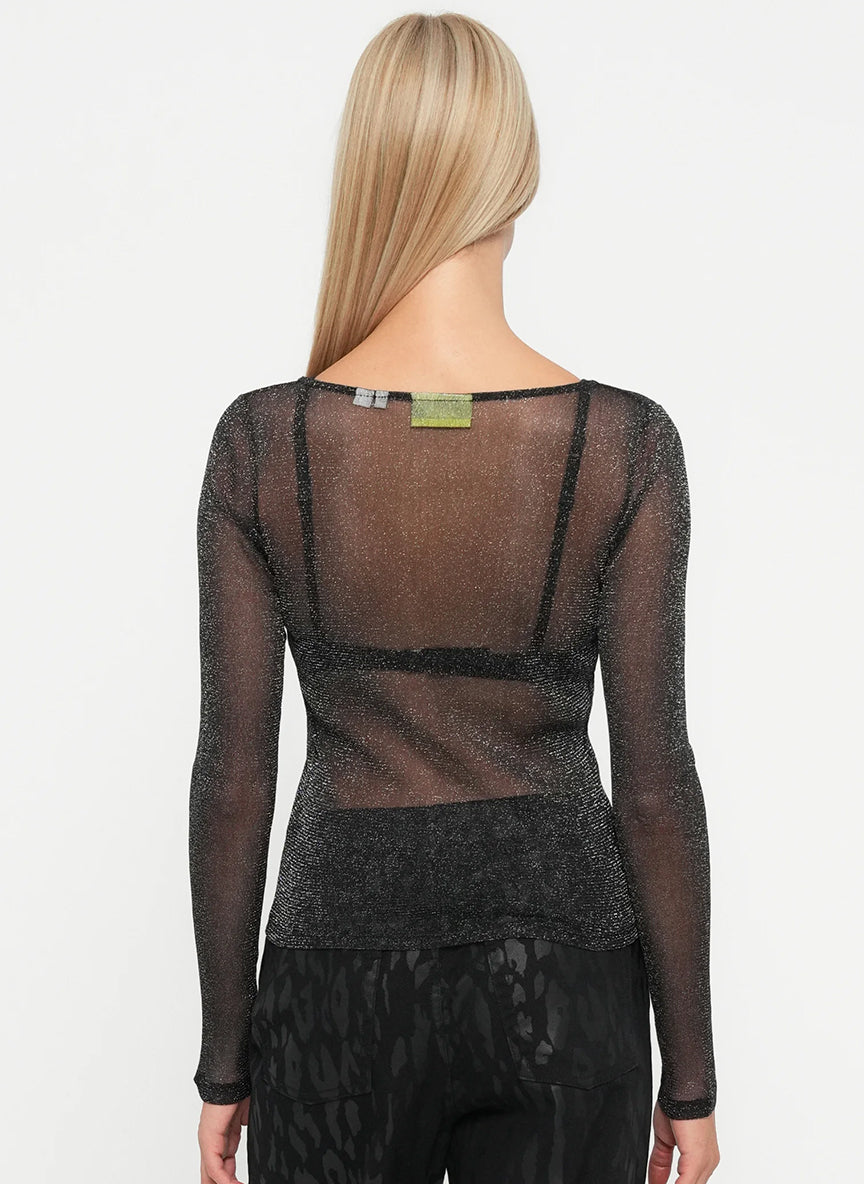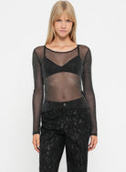 Ce t-shirt à manches longues scintillant en mesh met en valeur la silhouette grâce à sa coupe près du corps et sa matière extensible. Son encolure ronde et son ourlet droit créent une allure moderne et élégante. Avec sa longueur aux hanches et son tissu scintillant, il apporte une touche glamour parfaite pour les looks de soirée ou superpositions stylées.