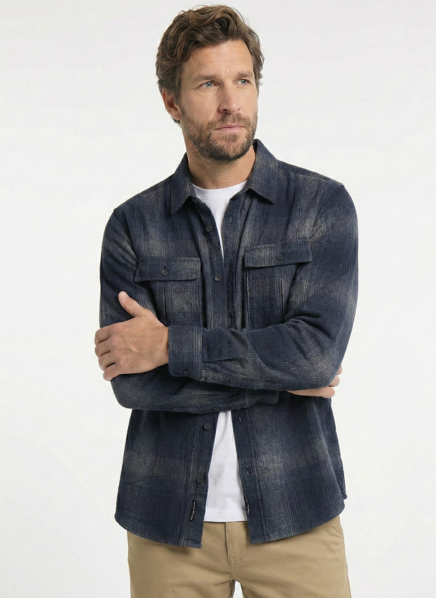 Cette surchemise à carreaux en velours côtelé marine séduit par sa coupe ample et son tissu texturé qui apportent confort et caractère. Dotée d’un col chemisier, de deux poches appliquées à rabat et d’une boutonnière pleine longueur, elle offre un style pratique et soigné. Avec ses manches longues ajustables et son ourlet légèrement arrondi, elle se porte aisément pour un look chaleureux et polyvalent.