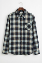 La chemise à carreaux turquoise adopte une coupe droite avec un col chemisier et une poche appliquée à la poitrine. Sa boutonnière pleine longueur et ses manches longues munies d’une ouverture et d’un bouton aux poignets offrent un style classique et polyvalent. Conçue en flanelle légère, elle procure confort et douceur tout au long de la journée.