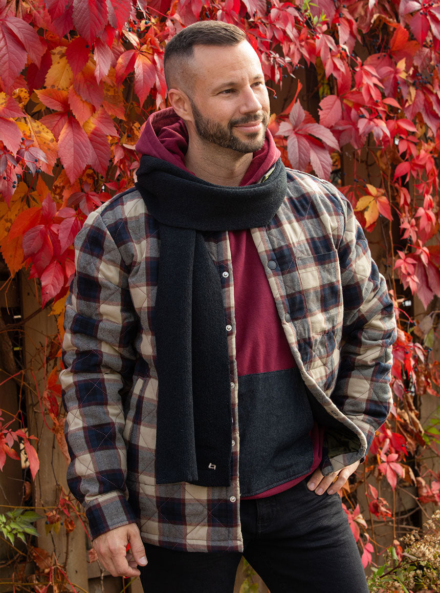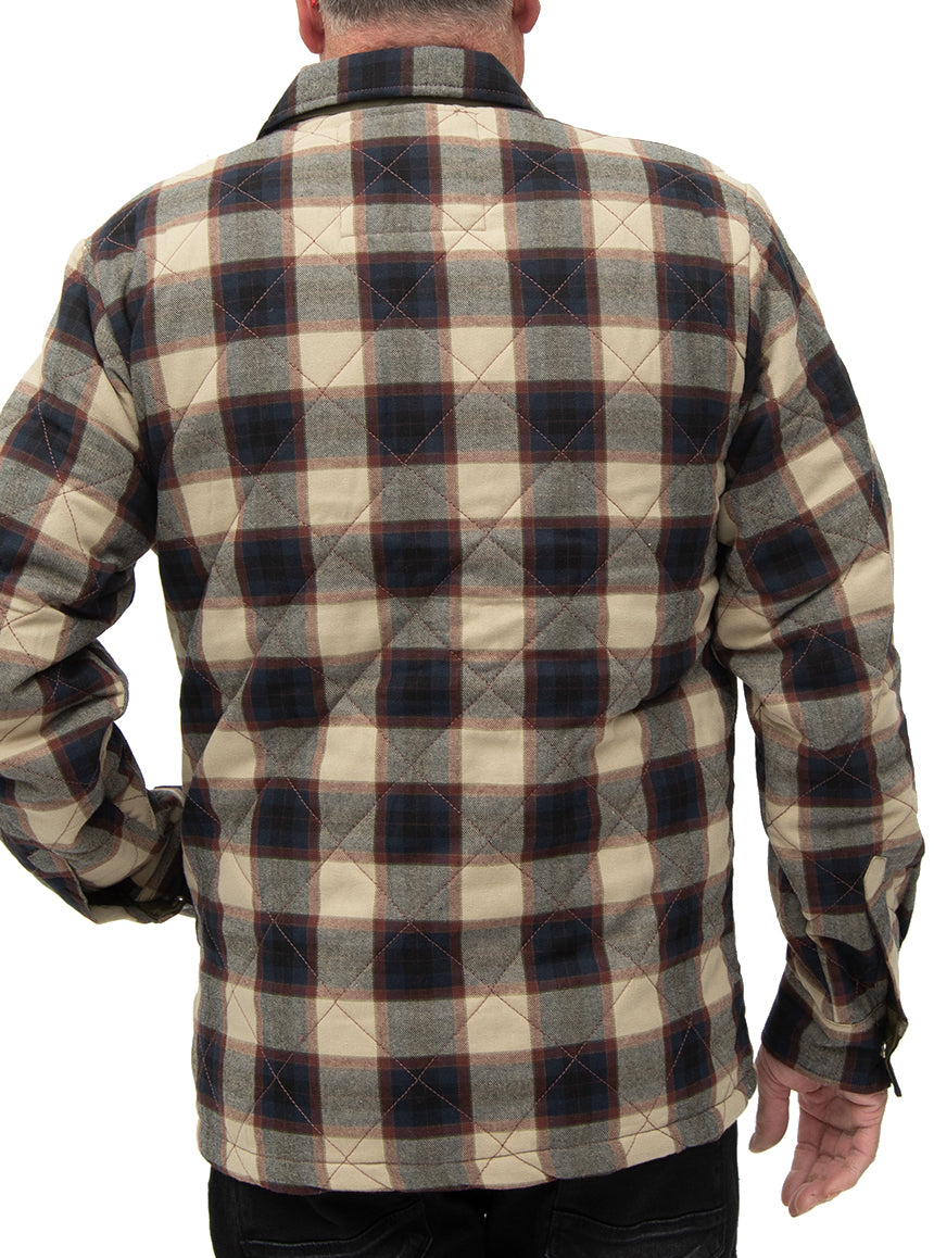 Manteau Pentagone à carreaux. Boutons pressions au devant. Se superpose très bien à un coton ouaté pour un look plus sport.