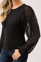 La blouse noire à manches plissées soleil