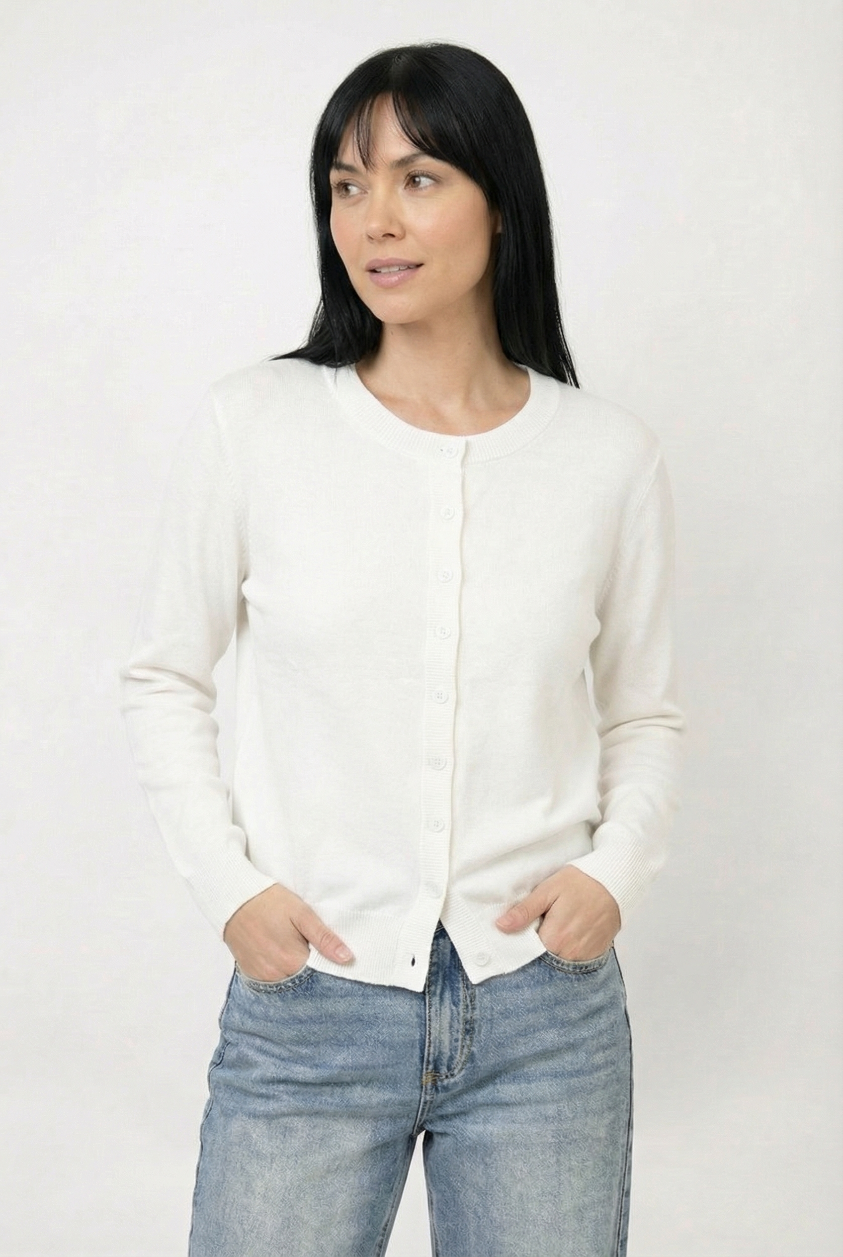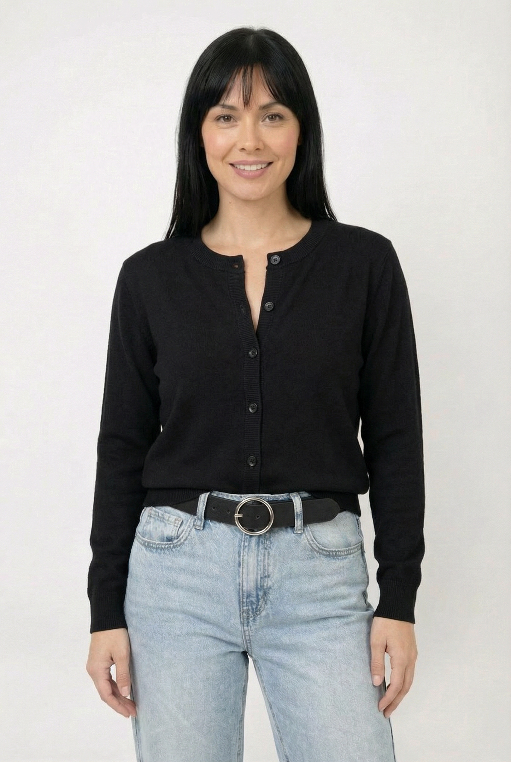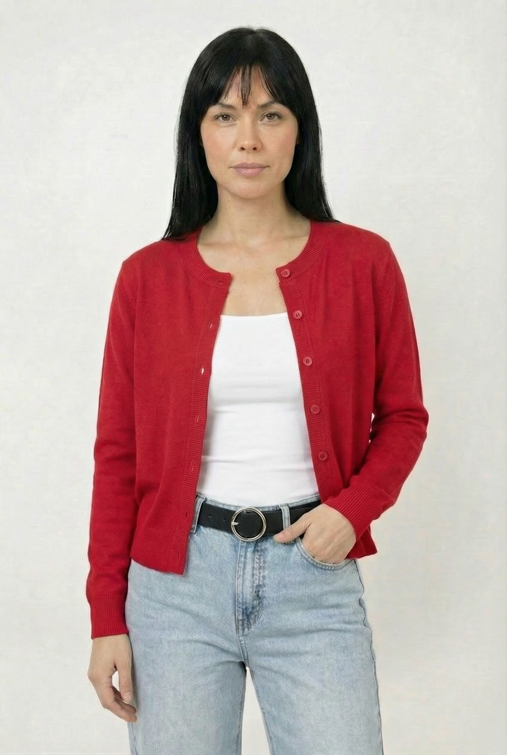 Ce cardigan est confectionné dans un tricot très confortable au toucher doux et soyeux. Sa coupe classique épouse naturellement la silhouette tout en offrant une belle liberté de mouvement. Il est doté d’une encolure ronde, d’une fermeture boutonnée sur le devant ainsi que de finitions côtelées aux poignets et à l’ourlet pour une tenue impeccable. Facile à agencer, il se porte autant fermé comme un chandail qu’ouvert en superposition.