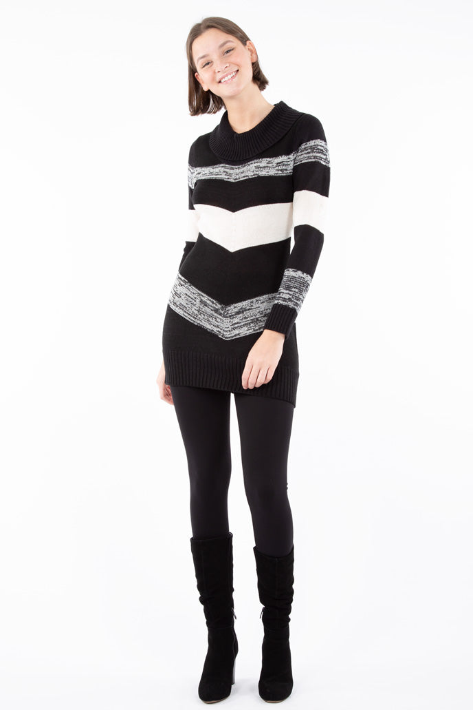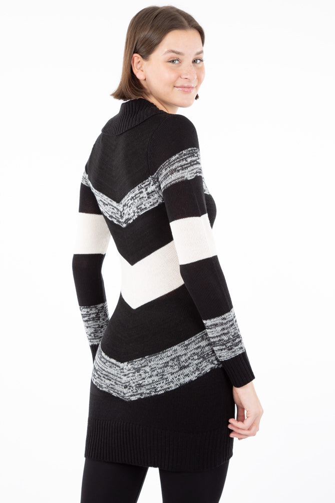 Robe lignée chevron, pour femme, de la collection Pentagone. Tricot côtelé au col, aux poignets et à la base. Tissu léger et extensible super confortable. Cette robe pour femme à manches longues se porte bien avec un bas de nylon ou un legging. Ne faites pas de compromis entre confort et style.