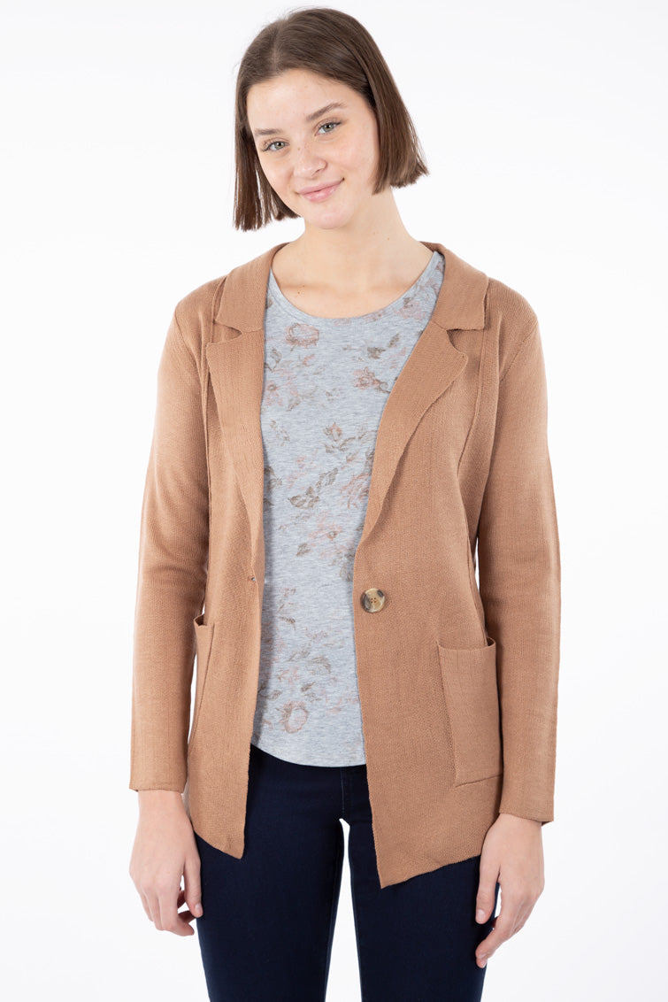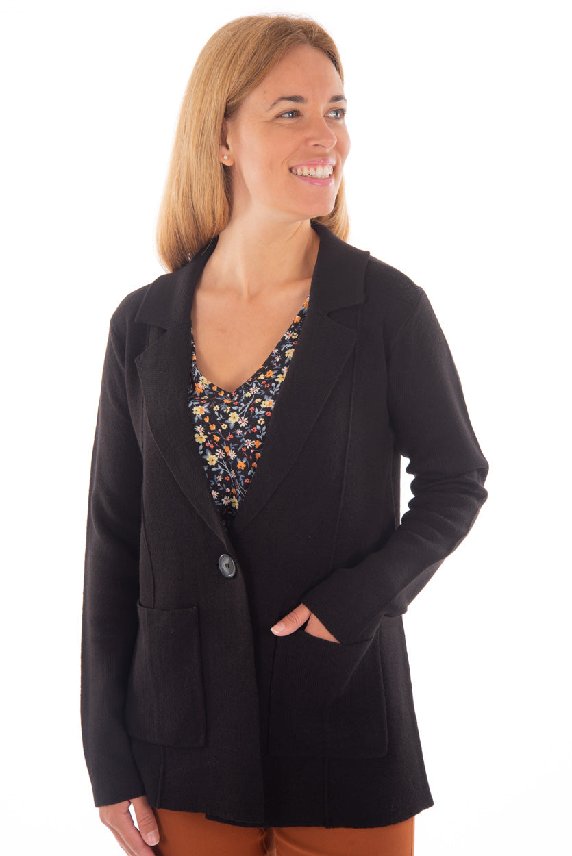 Blazer pour femme en tricot de la collection Pentagone. Poches plaquées à l’avant. Offrez-vous ce blazer à l’allure chic mais avec le confort d’une veste douillette. Idéal pour la saison, ce blazer pour femme d’un confort indéniable vous procurera style et confort pour tous vos looks favoris! Portez-le en toutes occasions !