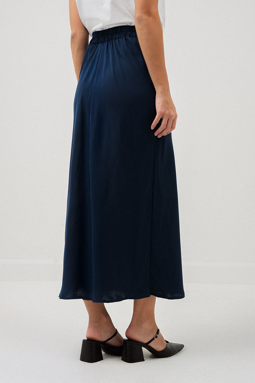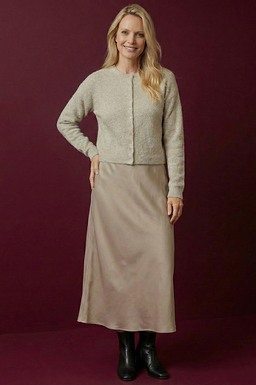 La jupe en satin ligne A séduit par son élégance simple et sa fluidité naturelle. Conçue avec une taille régulière et une ceinture de 1 5/8 pouces dotée d’un élastique discret au dos, elle assure un ajustement confortable sans compromettre le style. Sa coupe ligne A met en valeur la silhouette avec une touche féminine et intemporelle. Réalisée dans un tissu satiné doux et fluide, elle offre un tombé raffiné qui accompagne avec grâce chacun de vos mouvements, parfaite pour des looks habillés ou décontractés chic.