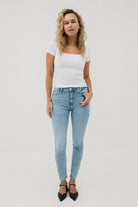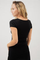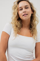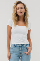 Avec son encolure carrée moderne, ses manches courtes et son ourlet droit, il se porte facilement seul ou en superposition. Une pièce minimaliste, flatteuse et polyvalente à intégrer à toutes vos tenues.