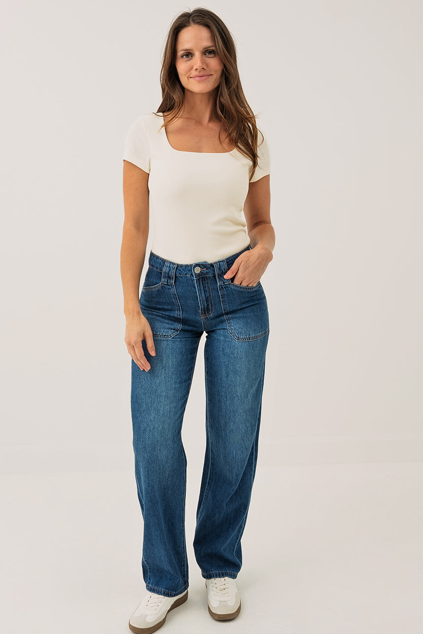 Le jeans bleu avec poches appliquées | Modèle Béa
