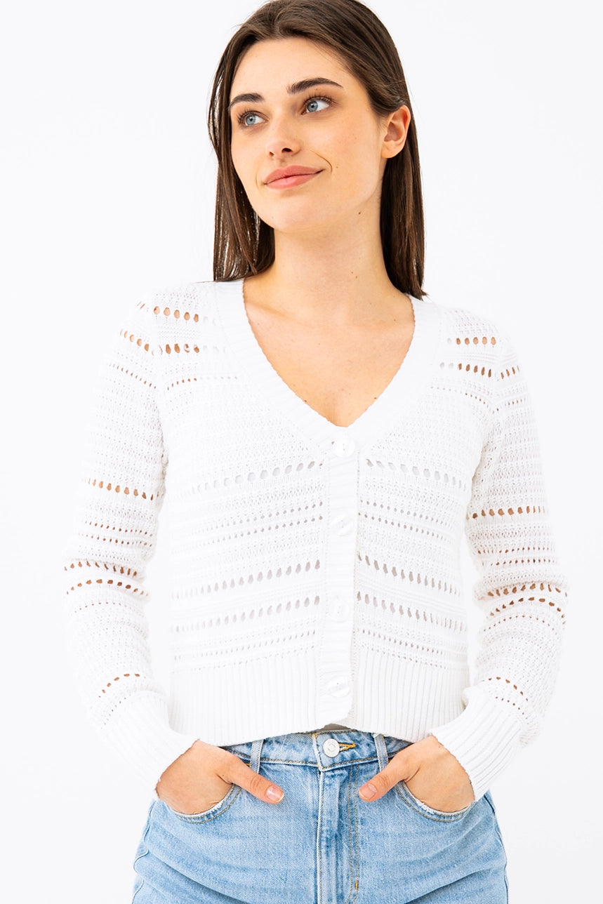 Ajoutez une touche bohème et raffinée à votre garde-robe avec ce cardigan court en crochet. Conçu pour allier style et confort, il présente une coupe régulière qui flatte toutes les silhouettes. Ses manches longues et ses bordures côtelées assurent une belle tenue, tandis que sa matière ajourée et extensible offre une sensation de légèreté et de douceur sur la peau.