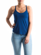 Camisole Pentagone en tricot à fine bretelles et dos nageur. Se porte très bien seule ou dessous une blouse ou un blazer.