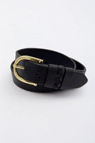 Cette ceinture en cuir se distingue par son passant central tressé, apportant une touche de style et de raffinement à vos tenues. Sa boucle arrondie en laiton et sa finition en pointe lui confèrent un look élégant et travaillé. Avec sa largeur de 1 3/8 pouce et sa matière robuste, elle assure maintien, durabilité et élégance au quotidien.