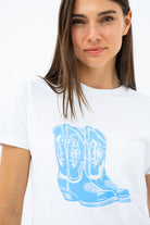 Audacieux et plein de caractère, le t-shirt imprimé bottes de cowboy apporte une touche western à votre garde-robe. Sa coupe ajustée met la silhouette en valeur, tandis que le col rond et les manches courtes assurent un look classique et facile à porter. Confectionné dans une matière fluide et confortable, il allie style et aisance au quotidien. Parfait pour injecter un brin d’attitude à vos tenues décontractées.