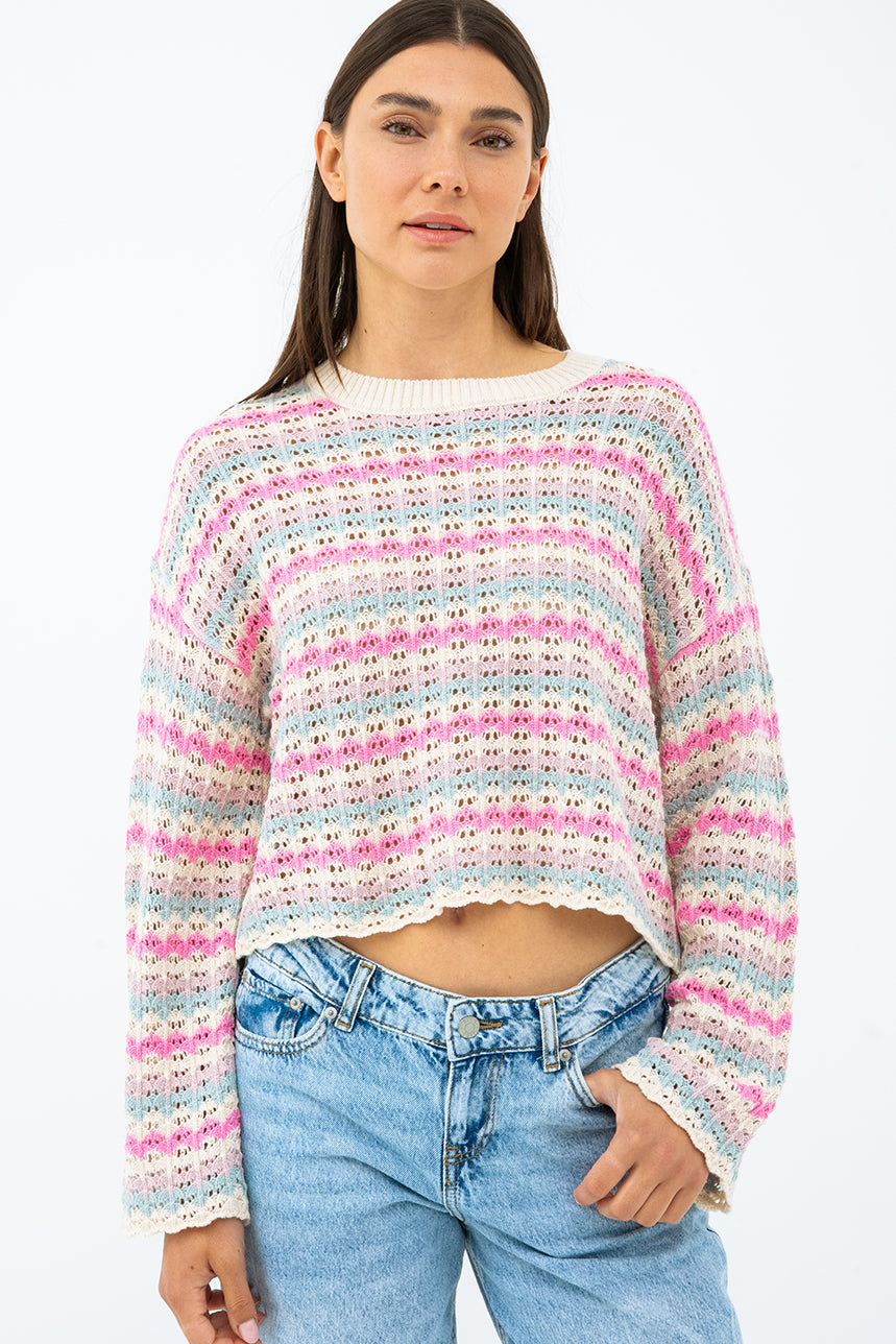Parfait pour les superpositions estivales, le chandail écourté à rayures en crochet de Only séduit par son style décontracté et son look texturé. Sa coupe ample et son col rond côtelé offrent une silhouette détendue, tandis que ses manches longues équilibrent parfaitement sa longueur écourtée. Confectionné dans une matière ajourée extensible et confortable, il est aussi agréable à porter qu’à regarder.