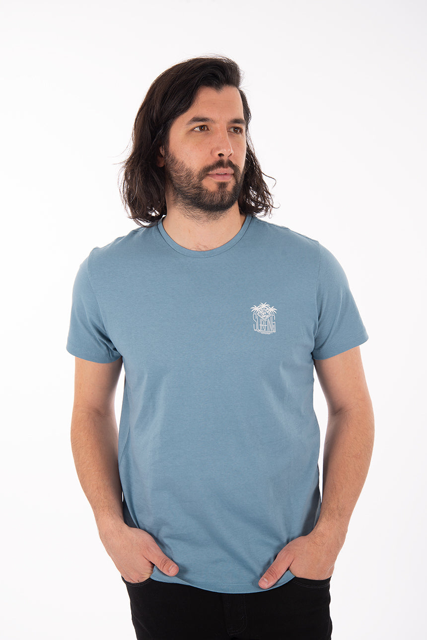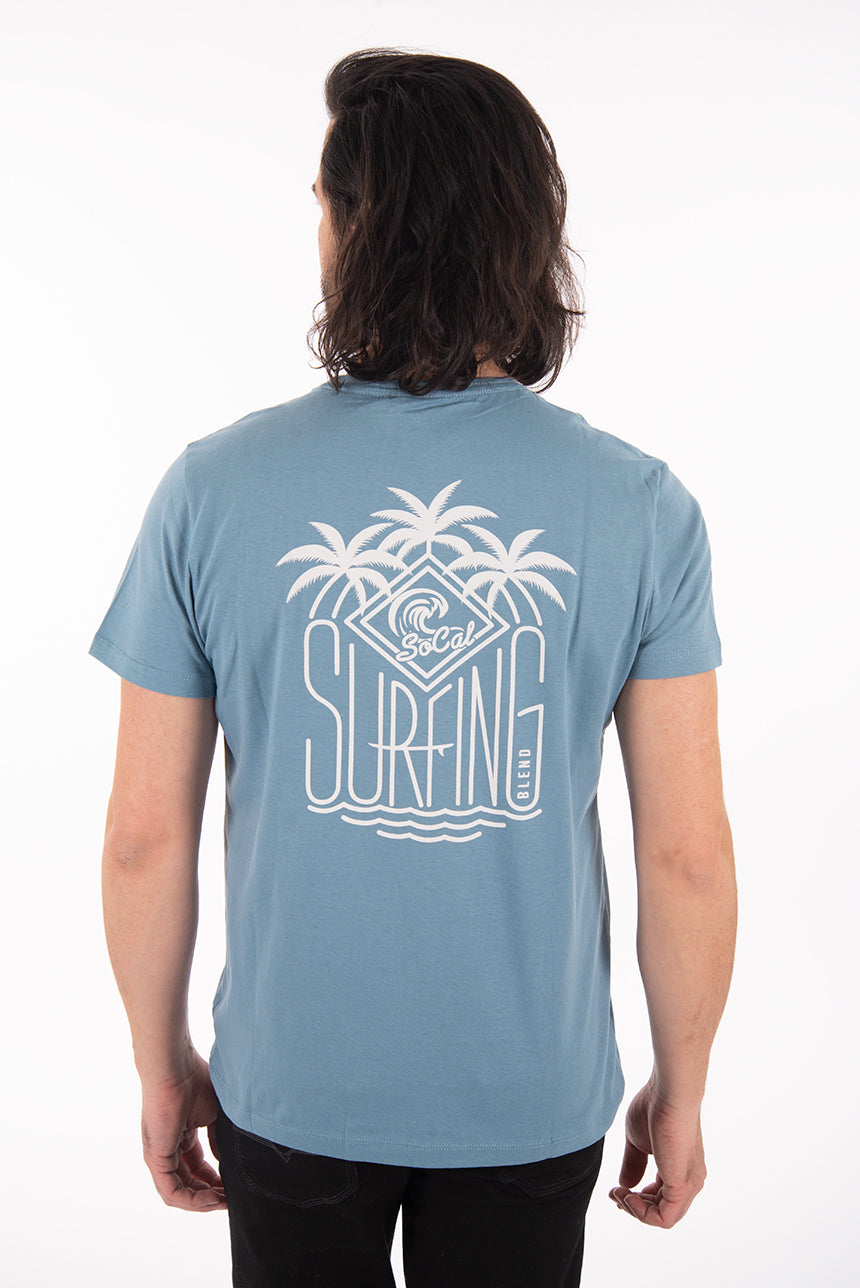 T-shirt col rond de la marque Blend. Imprimé graphique avec palmiers et inscription « surfing ». Ce t-shirt pour homme se démarque par son imprimé au dos inspiré par les voyages de surf et les paysages tropicaux.