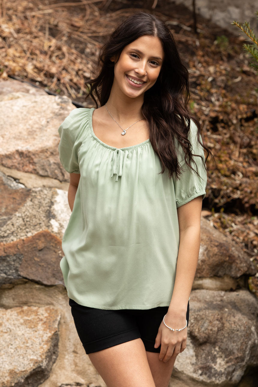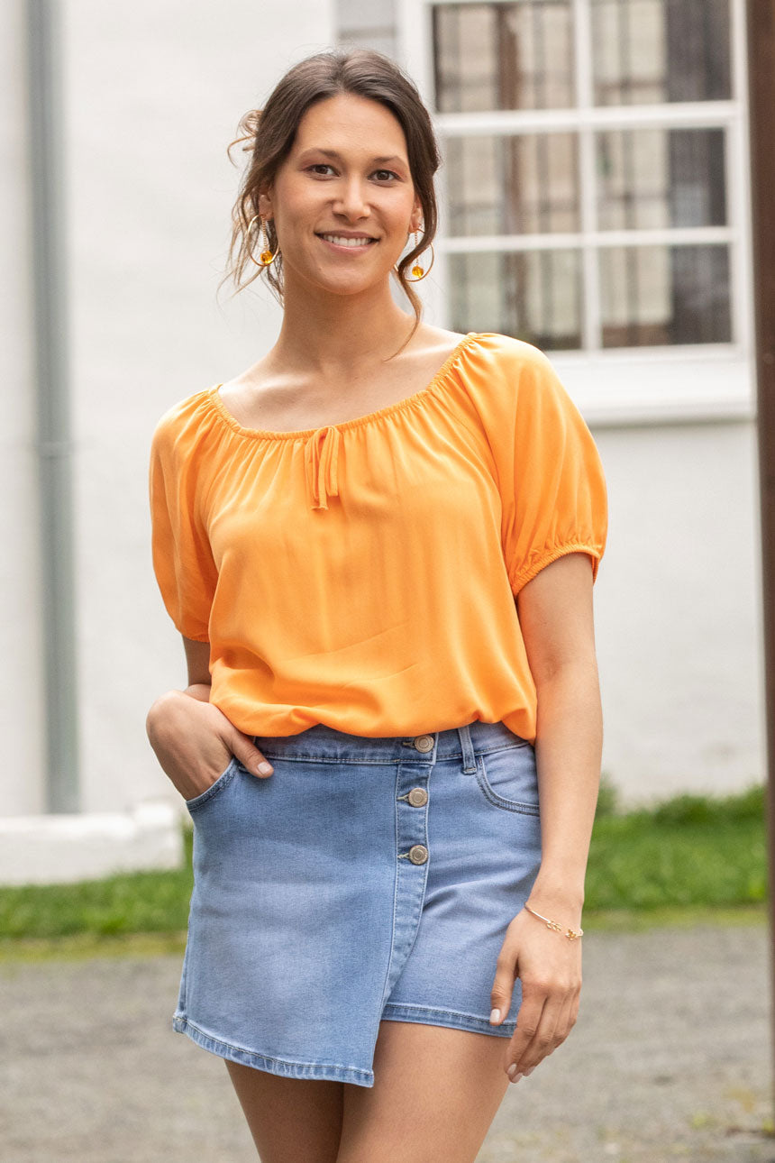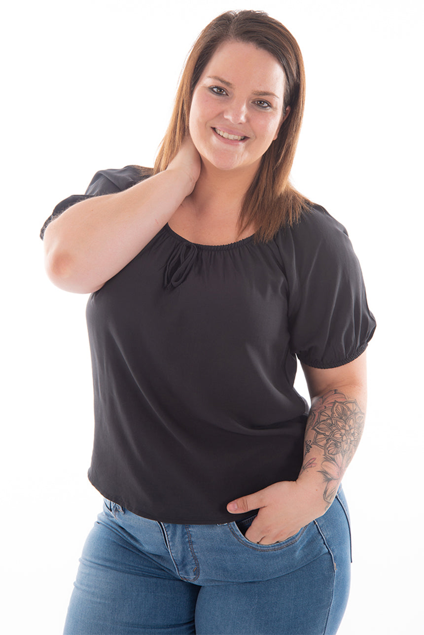 Blouse avec fibres écologiques LENZING™ ECOVERO™ de la marque B.Young. Tissu doux, fluide et léger qui vous gardera au frais et à l'aise. Joli cordon à nouer à l’avant pour un look parfait ! Bandes élastiques au col et aux manches. Cette blouse pour femme se porte aisément de deux façons : sous les épaules ou simplement par-dessus les épaules. Unie ou imprimée, vous succomberez à son charme !