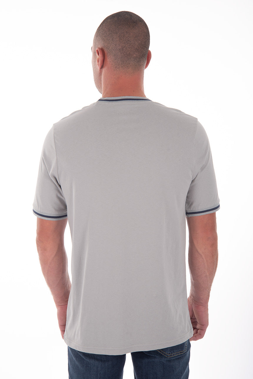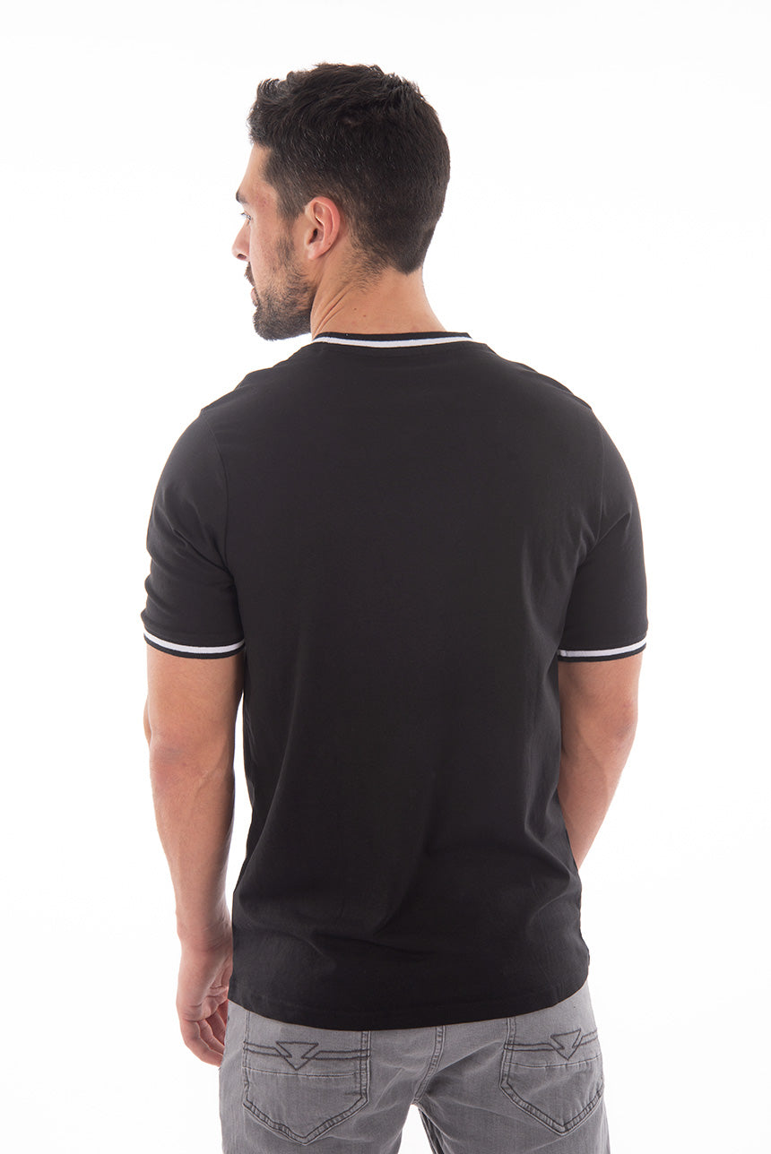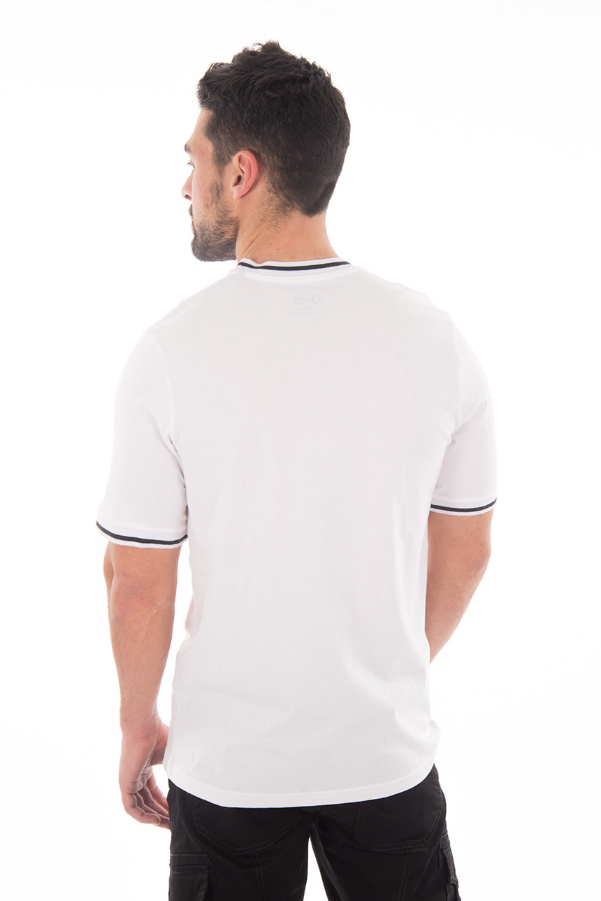 T-shirt uni avec rayures en contraste au col et aux manches. Fausse poche boutonnée en accent à l'avant. Tissu doux, confortable et extensible. Ce t-shirt pour homme sera un allié de vos looks tout-aller cette saison !